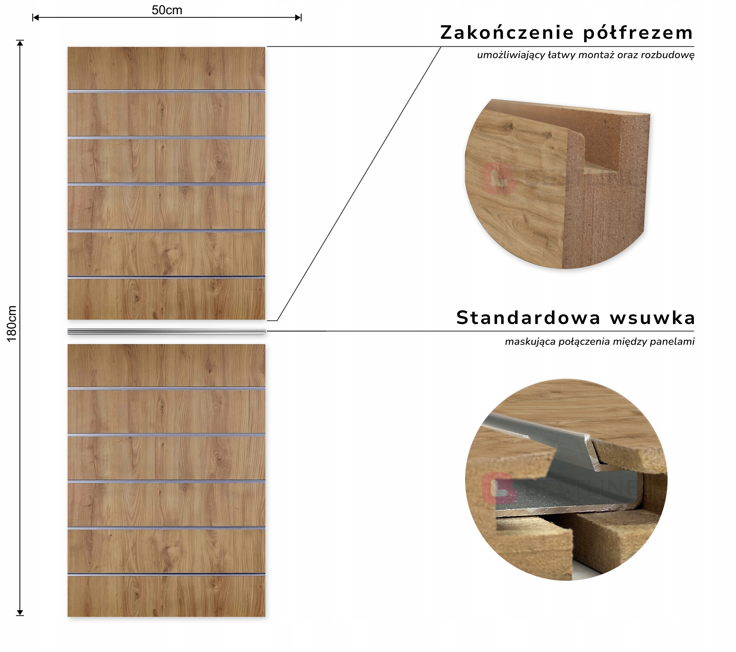 Покупая панель Slatwall, вы покупаете панель без отделки кромок. Алюминиевую защиту кромок, если она вам нужна, можно найти в нашем предложении Allegro.