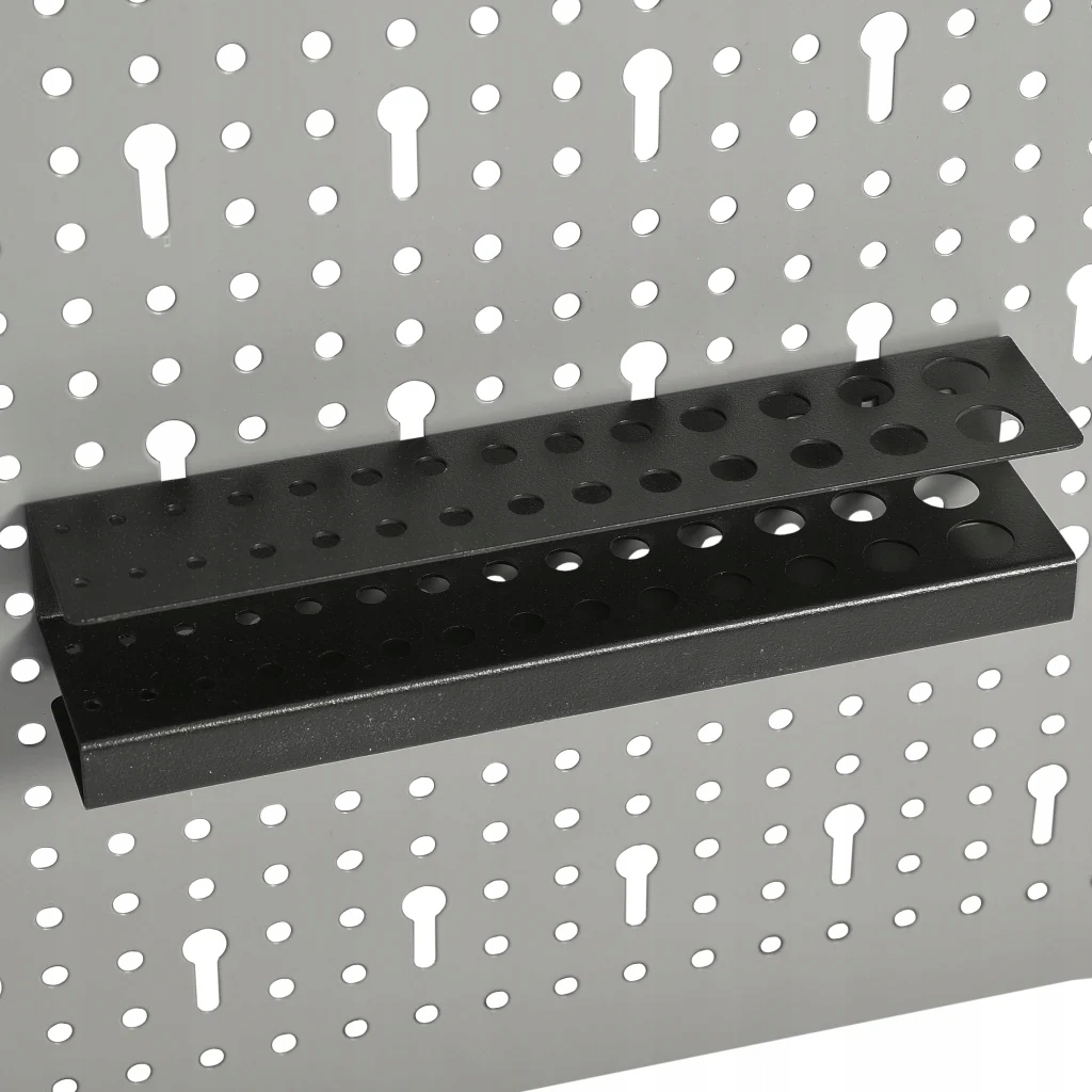 Наша перфорированная настенная пластина обеспечит порядок и легкий доступ к вашим инструментам. Его можно повесить в мастерской, гараже или в коммерческих помещениях. Изготовленные из прочной стали, эти панели для инструментов могут выдерживать вес различных инструментов, таких как дрели, плоскогубцы, отвертки и гаечные ключи. Доски перфорированы, что позволяет легко и безопасно подвешивать инструменты. 4 панели можно соединить вместе, чтобы повысить их жесткость. Это идеальное решение для вашего верстака и шкафа для мастерской благодаря ширине 160 см.