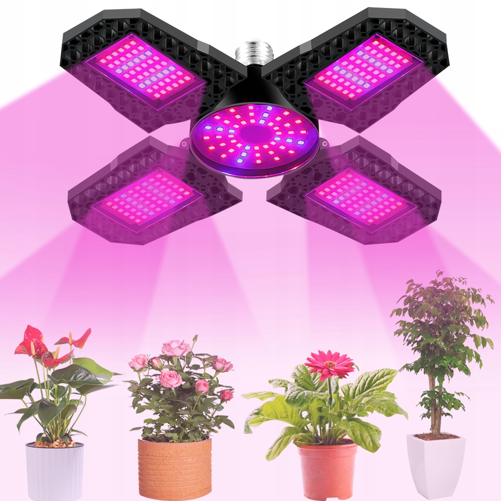【Складная лампа для выращивания】 Лампа для выращивания имеет 4 крылья, которые можно регулировать на 90°. Четыре крыла с углом луча 120° излучают свет, расширяя эффективную зону освещения для большего количества растений. Светодиодное освещение может охватывать площадь максимум 13,5 x 13,5 м/4 x 4 фута. При минимальных затратах эти светодиодные светильники для выращивания растений обеспечивают целевую длину волны на больших площадях, что способствует росту комнатных растений.