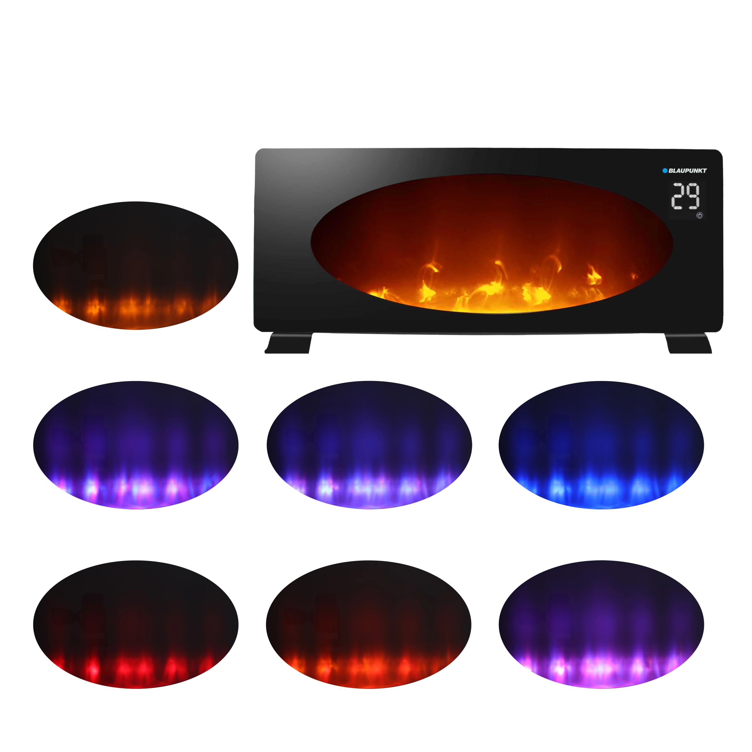 - Эффект пламени: 7 цветов, 5 яркости, стеклянная панель