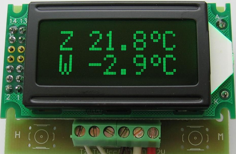 Представленное устройство обеспечивает измерение температуры от двух независимых датчиков и отображение показаний на ЖК-дисплее, а также возможность считывания и сохранения измерений на компьютере через RS232.