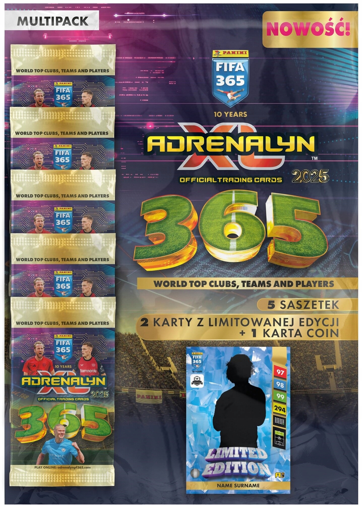 Panini Adrenalyn FIFA 365 2025 блістер + мультиупаковка з 79 футбольних карток