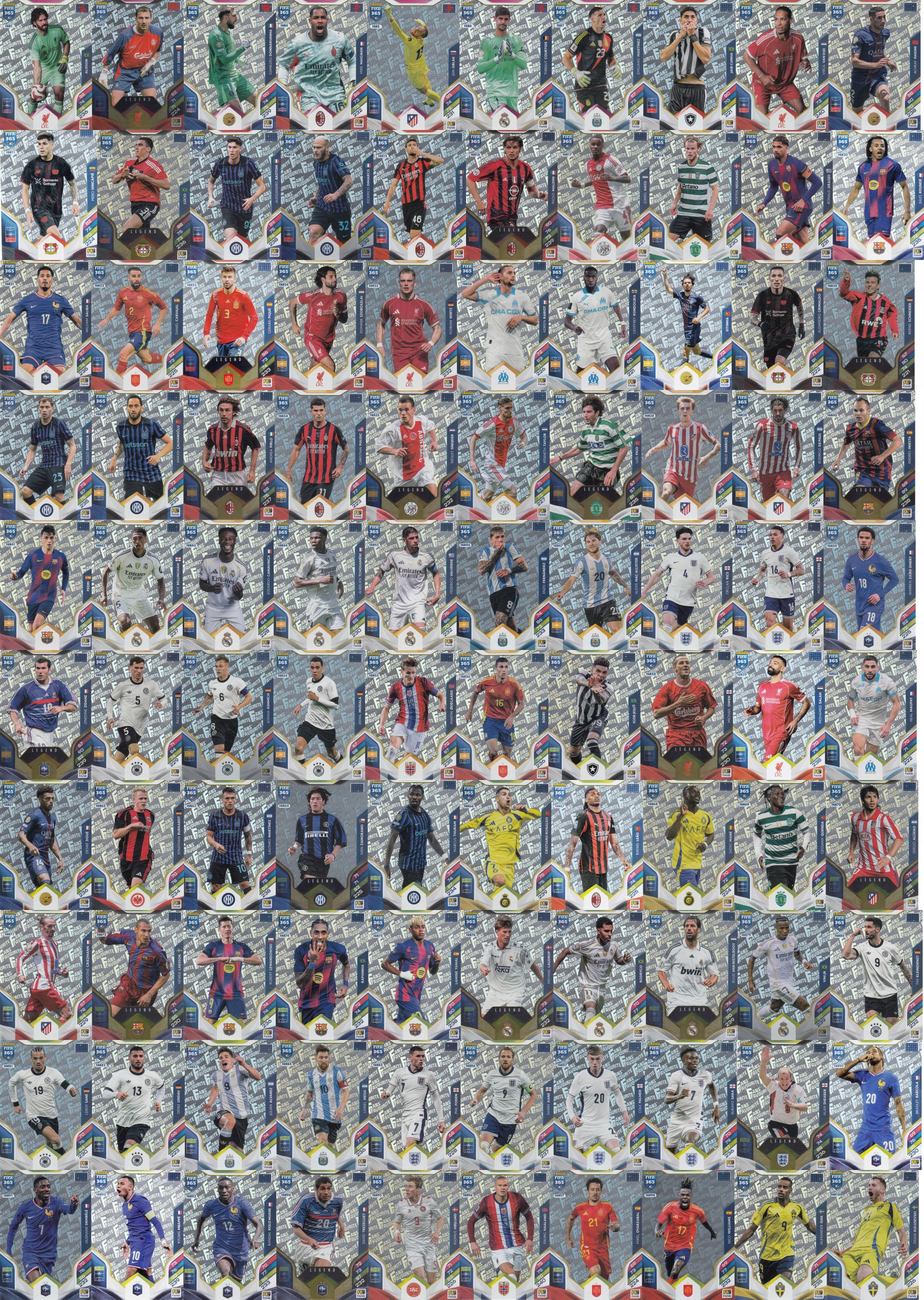 ⭐️В коллекцию вошли карточки с фотографиями таких легенд и нынешних звезд, как: Лионель Месси, Криштиану Роналду, Ламин Ямал, Эрлинг Хааланд, Андрес Иньеста, Зинедин Зидан, Паоло Мальдини и многие другие. Хитом коллекции являются открытки с подписями, среди которых оригинальные автографы легенд и современных звезд, среди которых: Ежи Дудек, Паоло Мальдини, Рональд Араужо, Андрес Иньеста, Зинедин Зидан, Лионель Месси, Эрлинг Хааланд и многие другие.