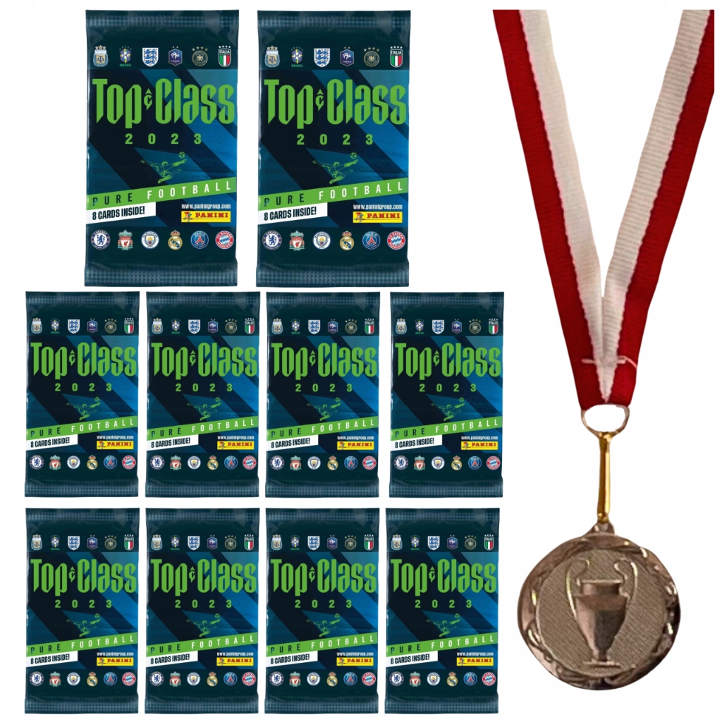 НАБОР X10 ФУТБОЛЬНЫХ КАРТочек PANINI TOP CLASS 2023 10 ПАКЕТОВ 80 КАРТочек + СЕРЕБРЯНАЯ МЕДАЛЬ С ЛЕНТОЙ