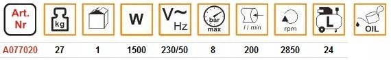 pansam a077020 масляный компрессор 1,5 кВт, 8bar, 24l h1>