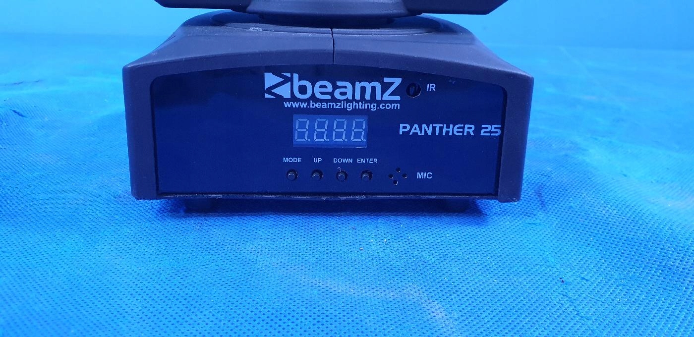 подвижная пантера 25 светодиодная голова от Beamz. Он имеет два диска с узорами и цветами гобо, которые можно смешать друг с другом, чтобы получить желаемый эффект. Всего доступно 7 цветов и 7 дизайнов гобо. Возможность управления головой, используя DMX, режим мастер-слов, а также работу в автоматическом режиме и реагировать на звук через встроенный микрофон. Оборудование идеально подходит для клубов, диско, а также для сценических шоу и для диджеев.