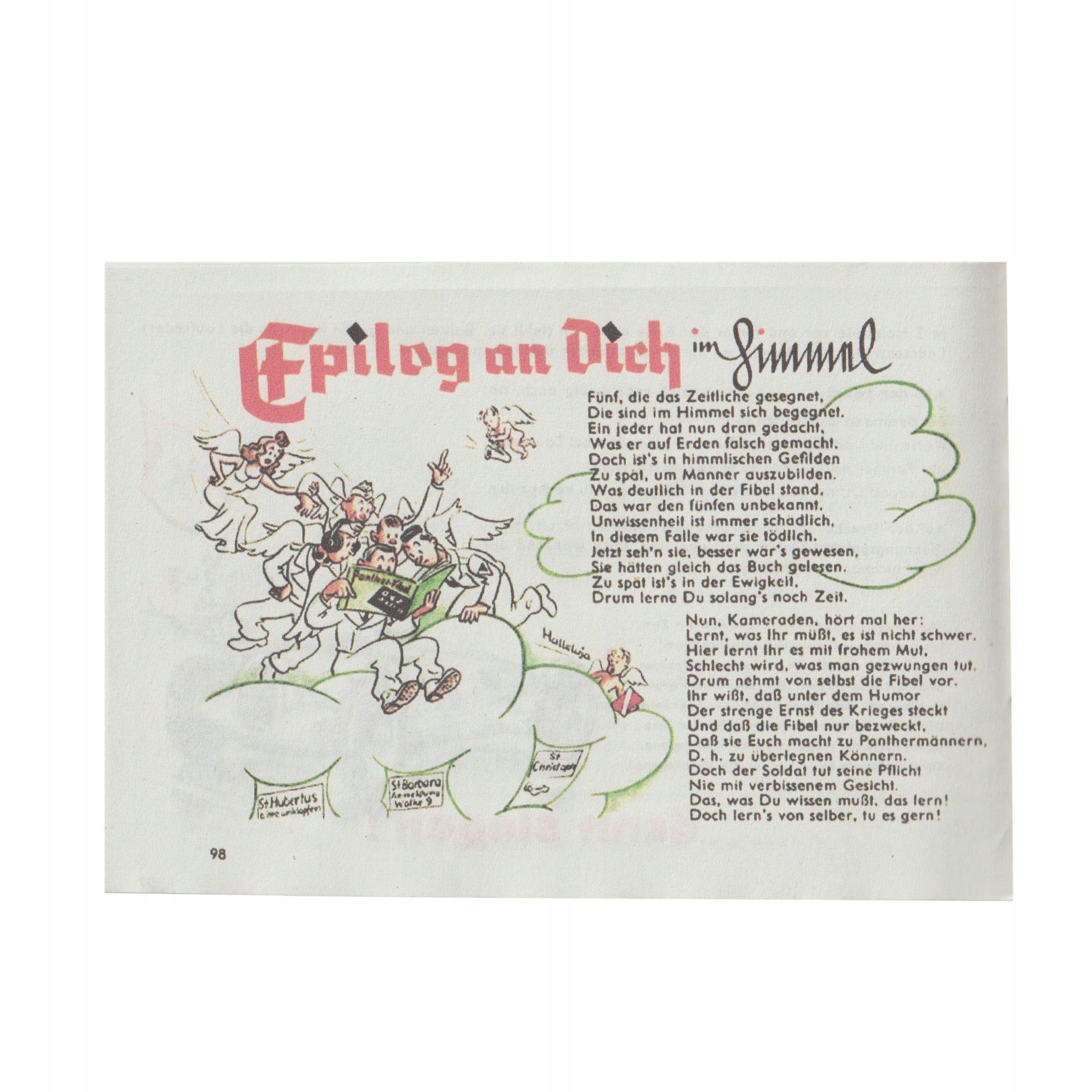 Идеальная копия Pantherfibel, инструкции для танкистов Panzerkampfwagen V Panther. Целью руководства было объяснение членам экипажа основных операций и технического обслуживания танков «Пантера». Буклет состоит как из описаний, так и из технических чертежей. Оно создано в юмористическом стиле, который был свойственен немецким пособиям для солдат. Реплика выполнена на плотной бумаге. Очень точно воспроизведены детали.