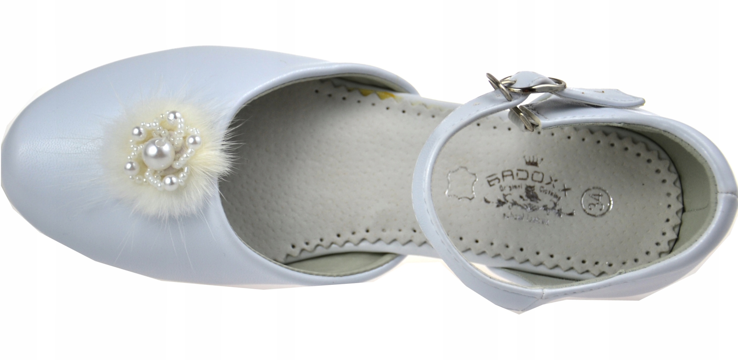 ПАНТОФЕЛИ Першого Причастя каблук Перли ШКІРА БІЛА r35