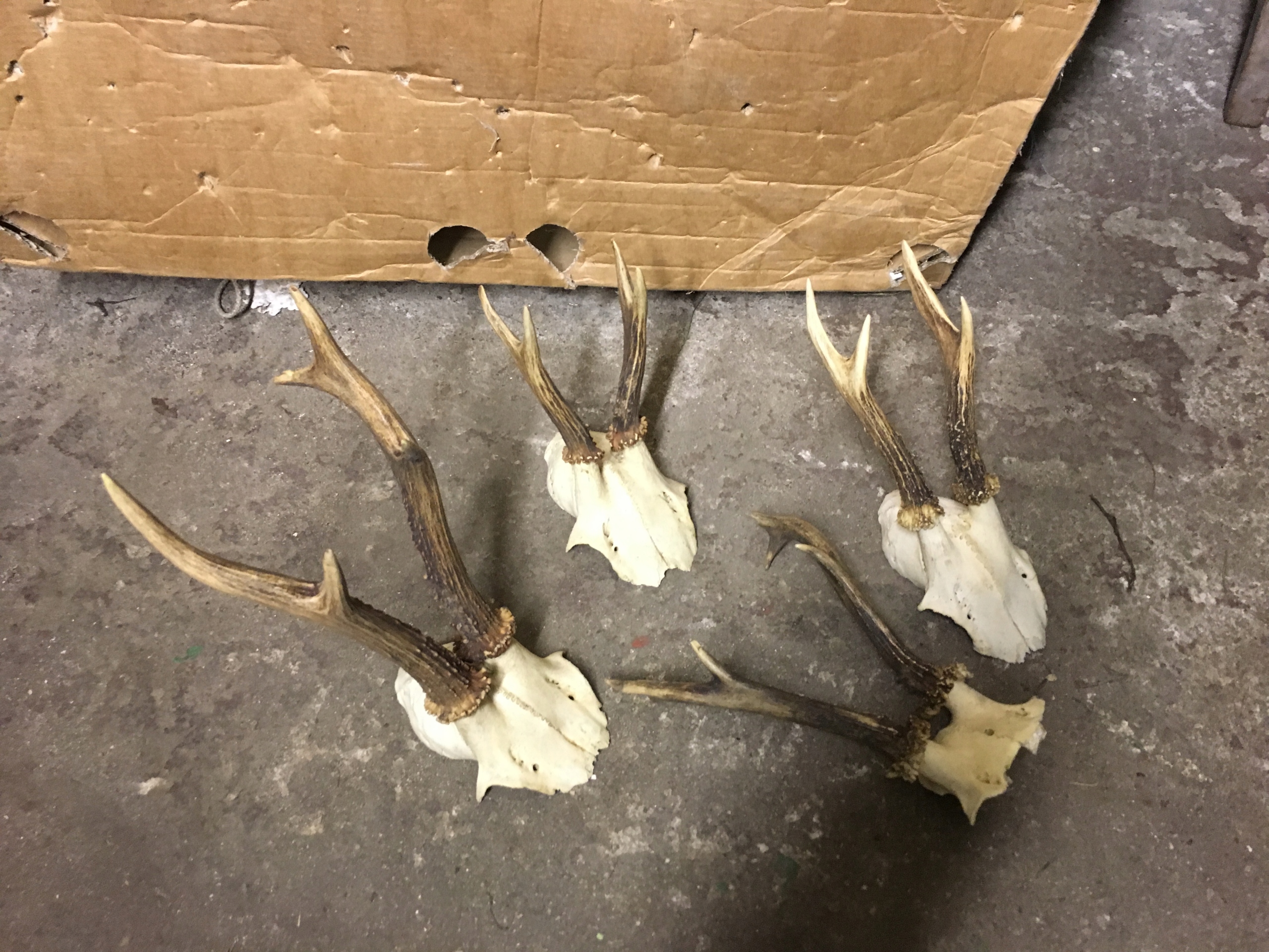 - с охотничьими трофеями: быки с черепами и рогами оленей, лосей, козлов, рога на досках