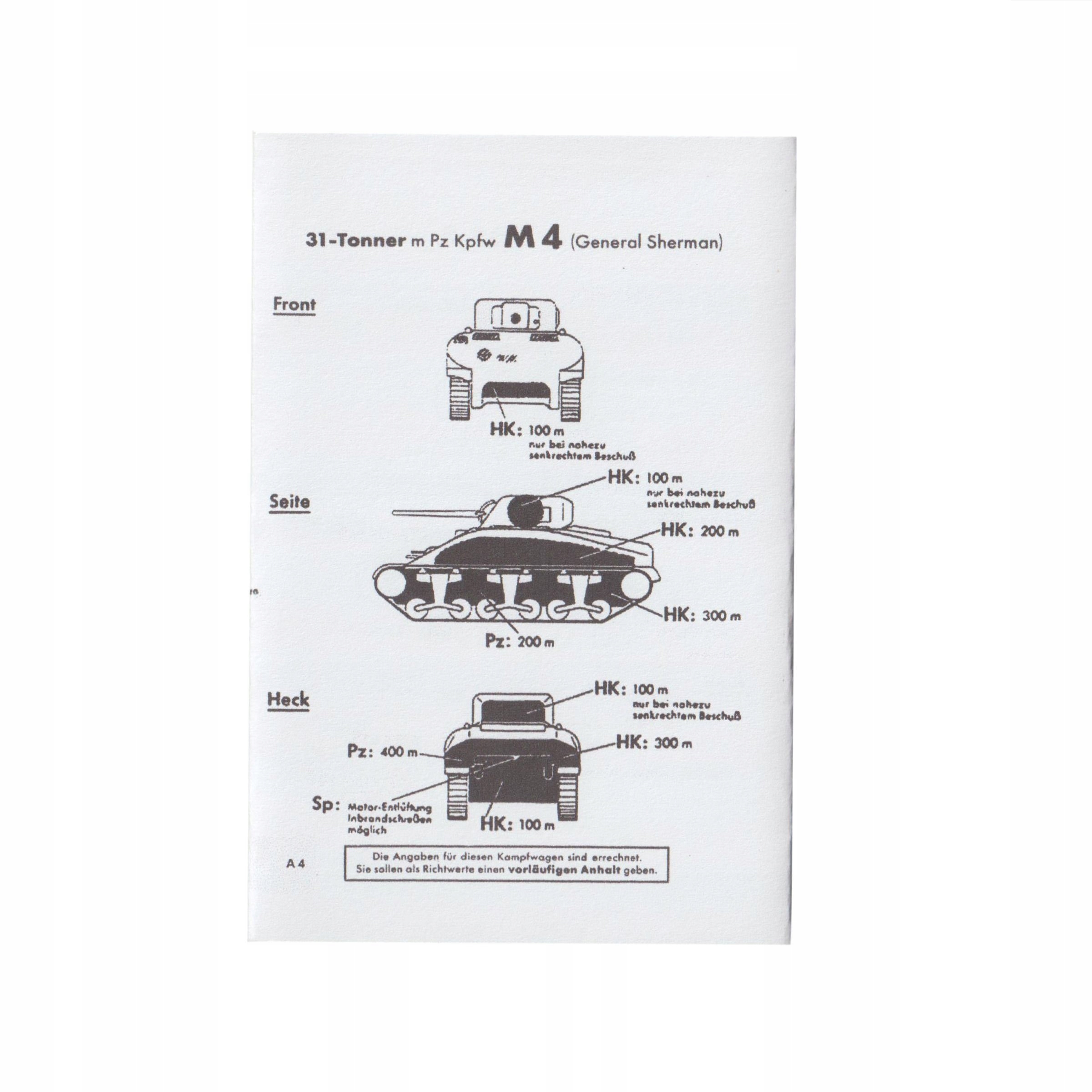 Идеальная копия Panzer-Beschußtafel 4,2 cm Pak 41, противотанкового калькулятора для расчета эффективной дистанции и полей стрельбы для солдат, использующих пушку Pak 41. Он состоит из конверта с полем стрельбы отдельных танков. Реплика выполнена на плотной бумаге. Очень точно воспроизведены детали.