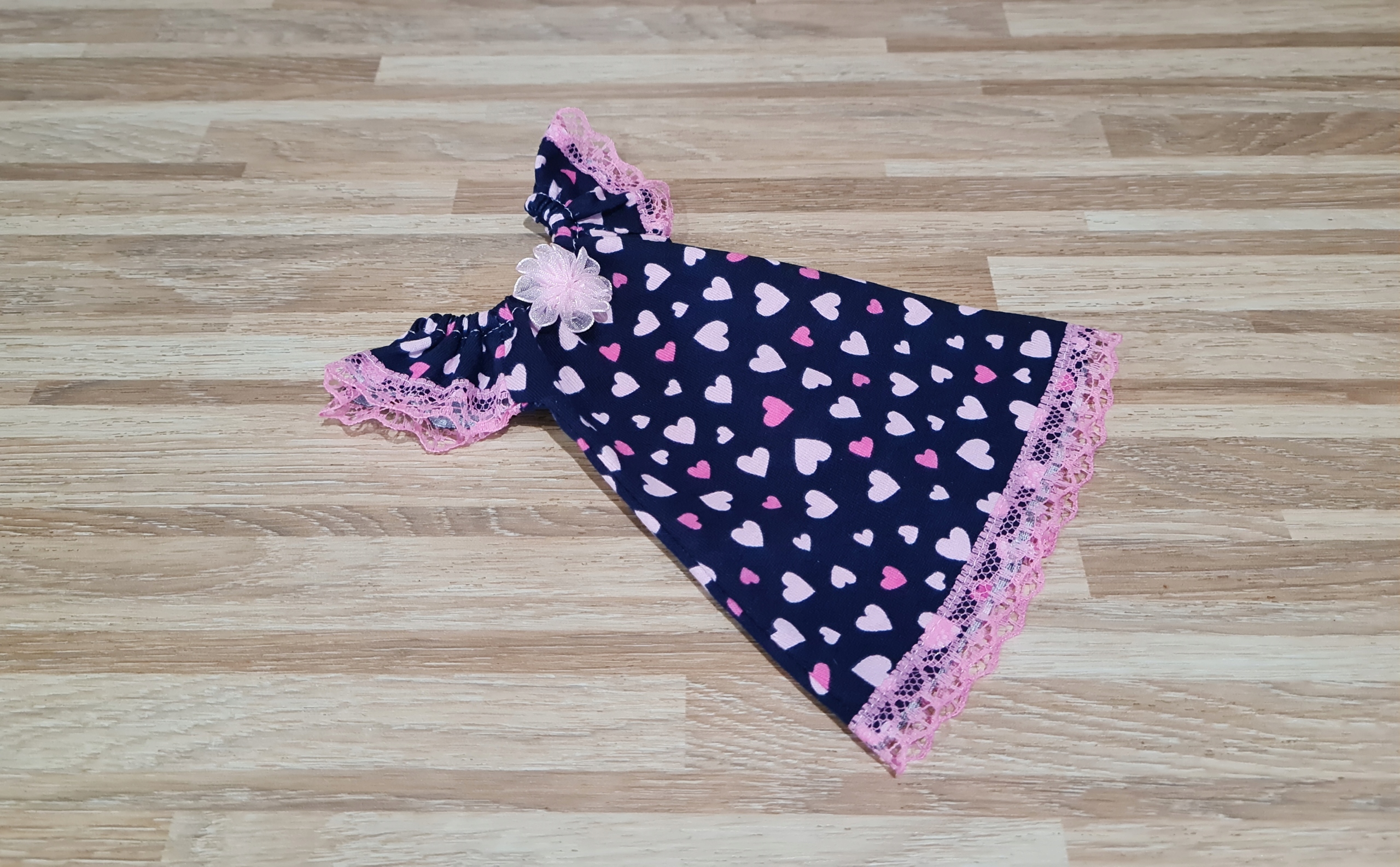 Объект продажи - кукольная одежда Paola Reina 32 см. Красивое платье из темно -синего трикотажа в сердца. Украшен кружевным и шифоновым цветом. Вырез имеет ластик, так что вы можете носить его несколькими способами. Разрез не требует крепления, но его легко надеть куклу.