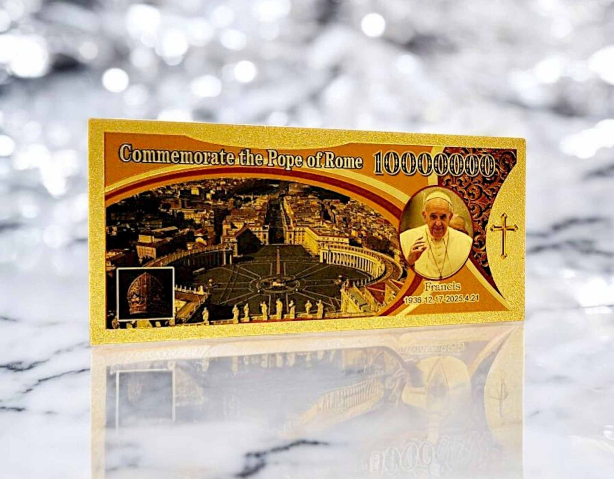 банкнота коллекционера, сделанная из прочного ПВХ, украшенная изображением его святости папы Франциска - символ мира, скромности и надежды для миллионов людей по всему миру. h2> Эта элегантная банкнота представляет собой комбинацию красоты, духовной ценности и редкого качества коллекционера. h2>
