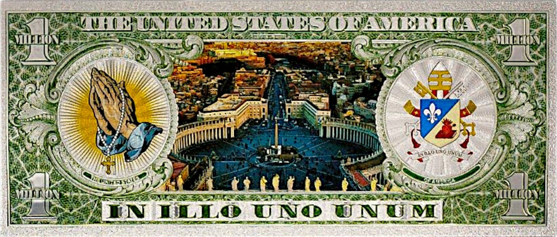 ❇️Реверс: панорамный вид на площадь Святого Петра Петр, молящиеся руки, папский престол герб