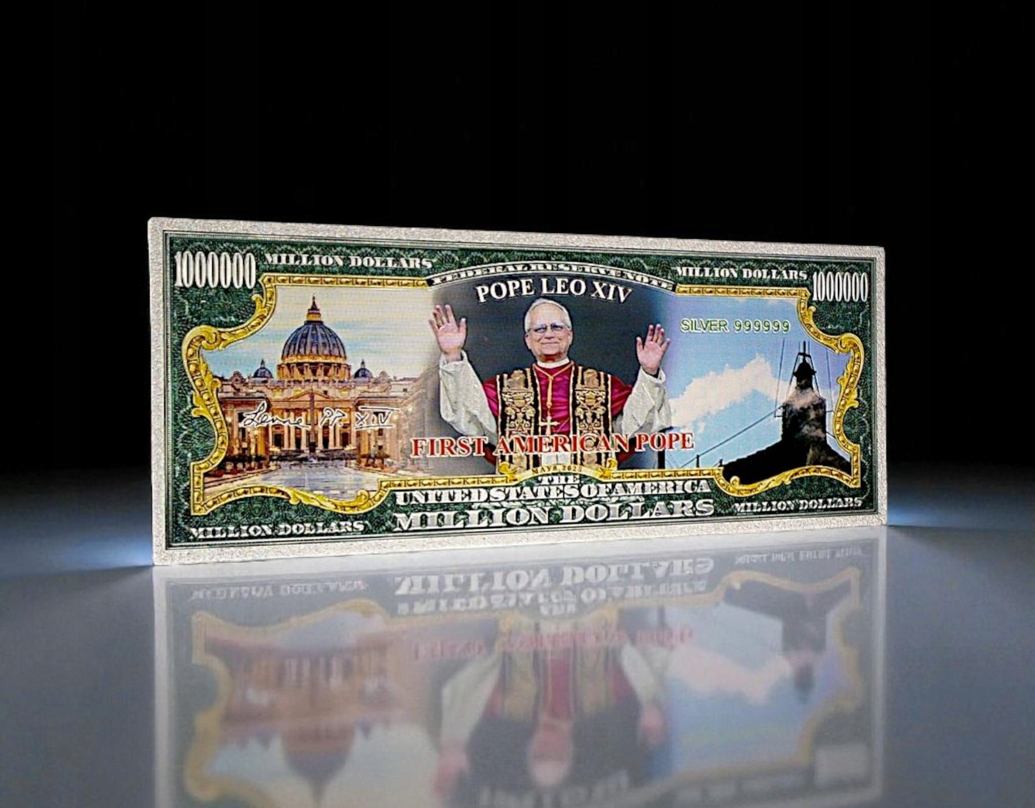 КОЛЛЕКЦИОННАЯ БАНКНОТА ПАПА ЛЕОН XIV ФАНТАЗИЯ ПОСЕРЕБРЕННАЯ КОЛЛЕКЦИОННАЯ БАНКНОТА ИЗ ПВХ
