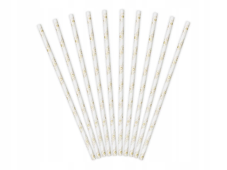 БЕЛО-ЗОЛОТАЯ БУМАЖНАЯ СОЛОМКА 10 ШТ