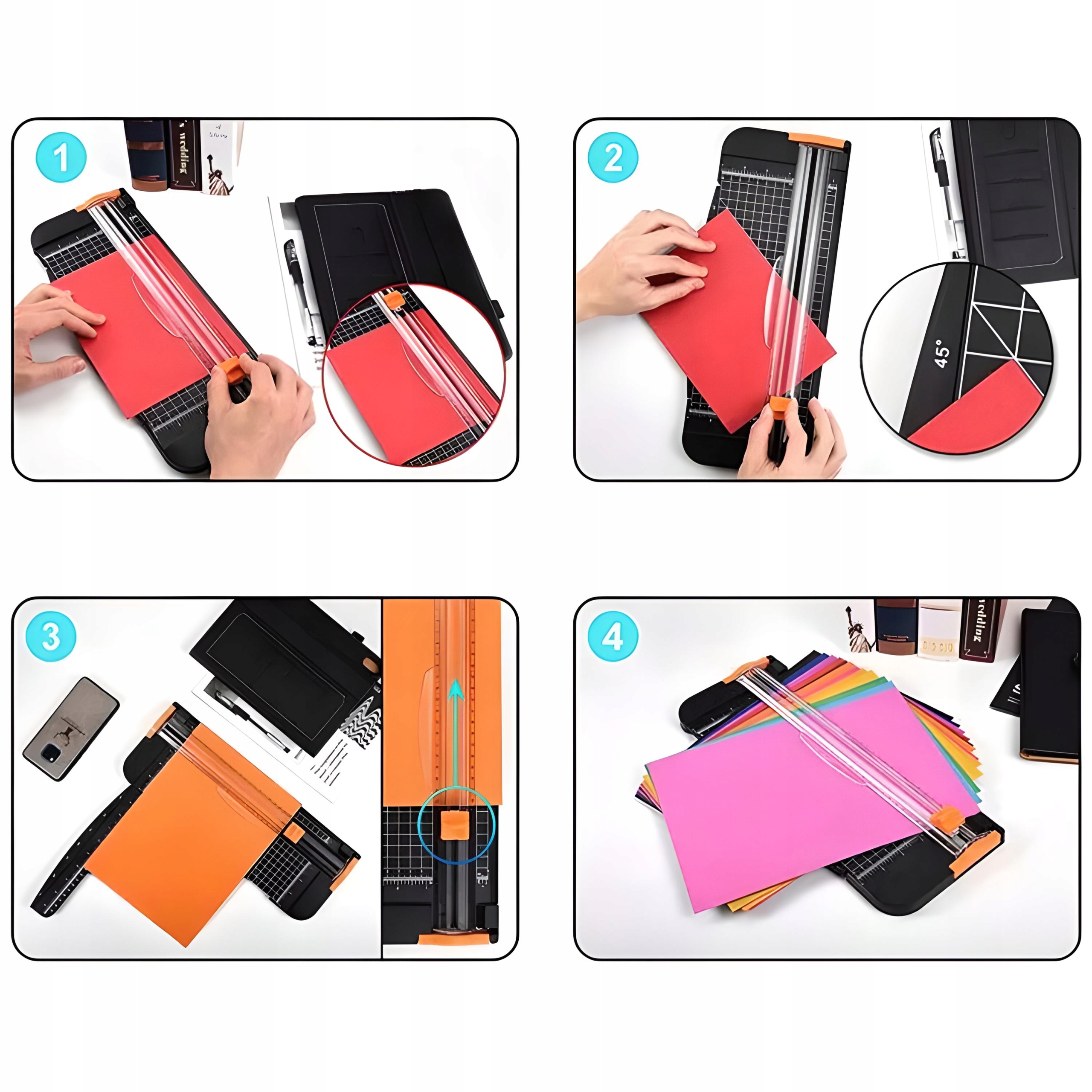 ⭐Нож для бумаги позволяет резать бумагу по прямой линии, а также разрезать бумагу в форме прямоугольника или квадрата. Резка гильотиной очень точна и позволяет получить ровные и эстетичные края бумаги.