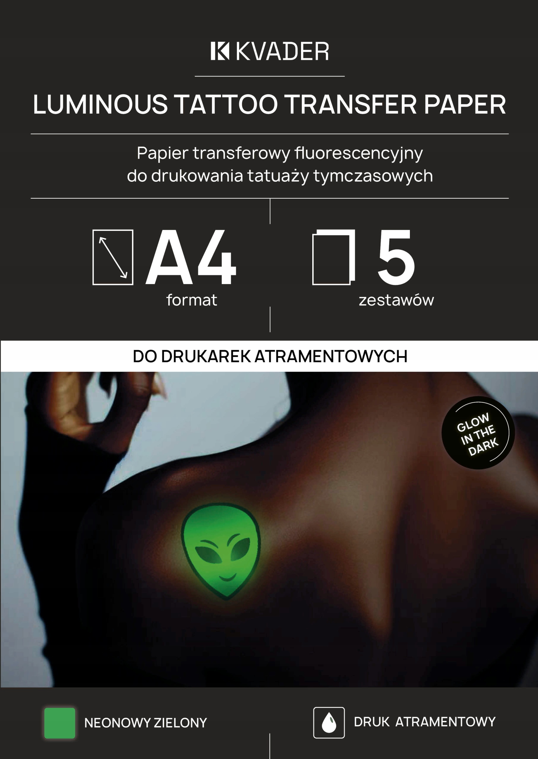 ПАПЕРОВА ПЛІВКА А4 ДЛЯ НЕОНОВОГО ТАТУЮВАННЯ, ЩО СВІТИТЬ ДЛЯ ПРИНТЕРА INKEY 5 аркушів