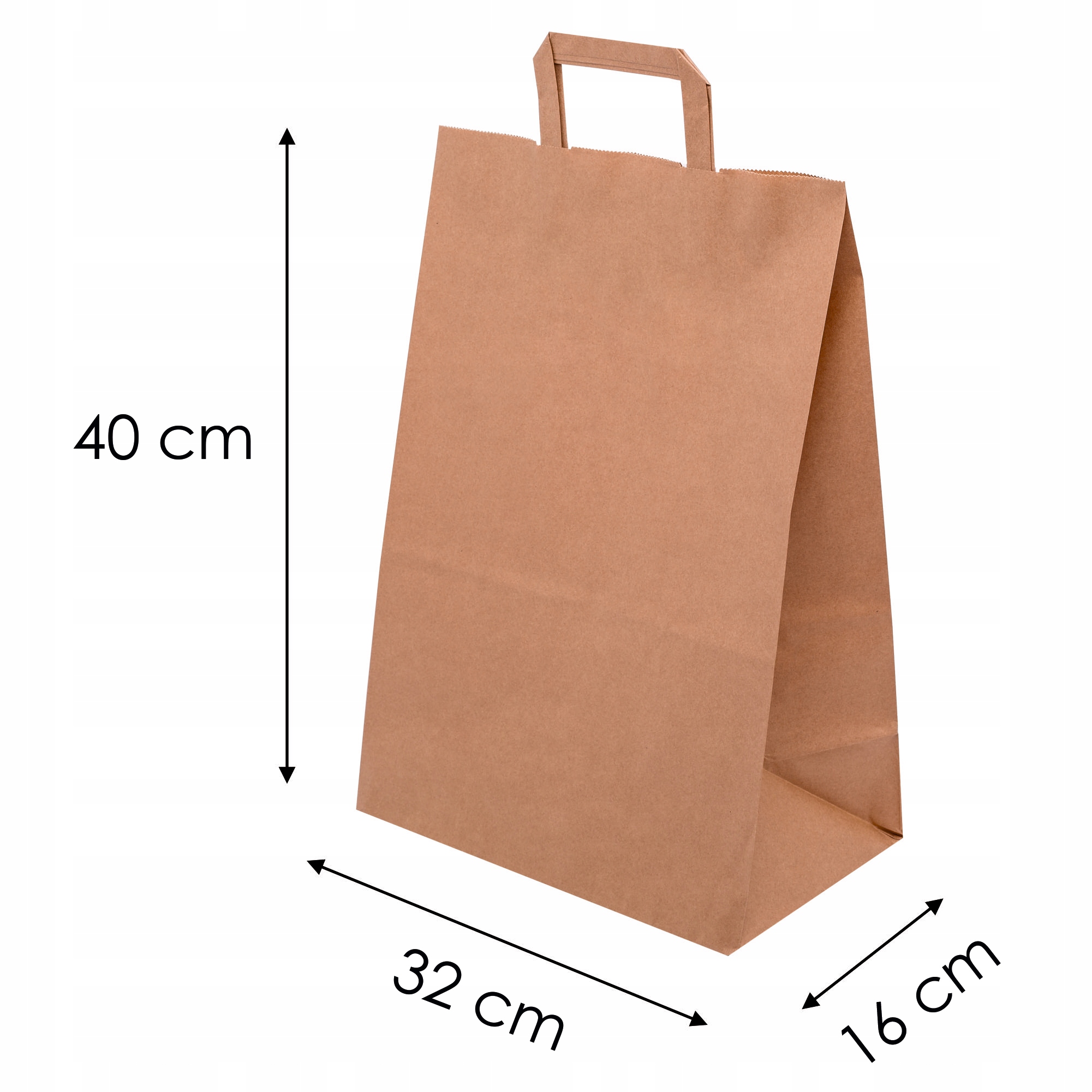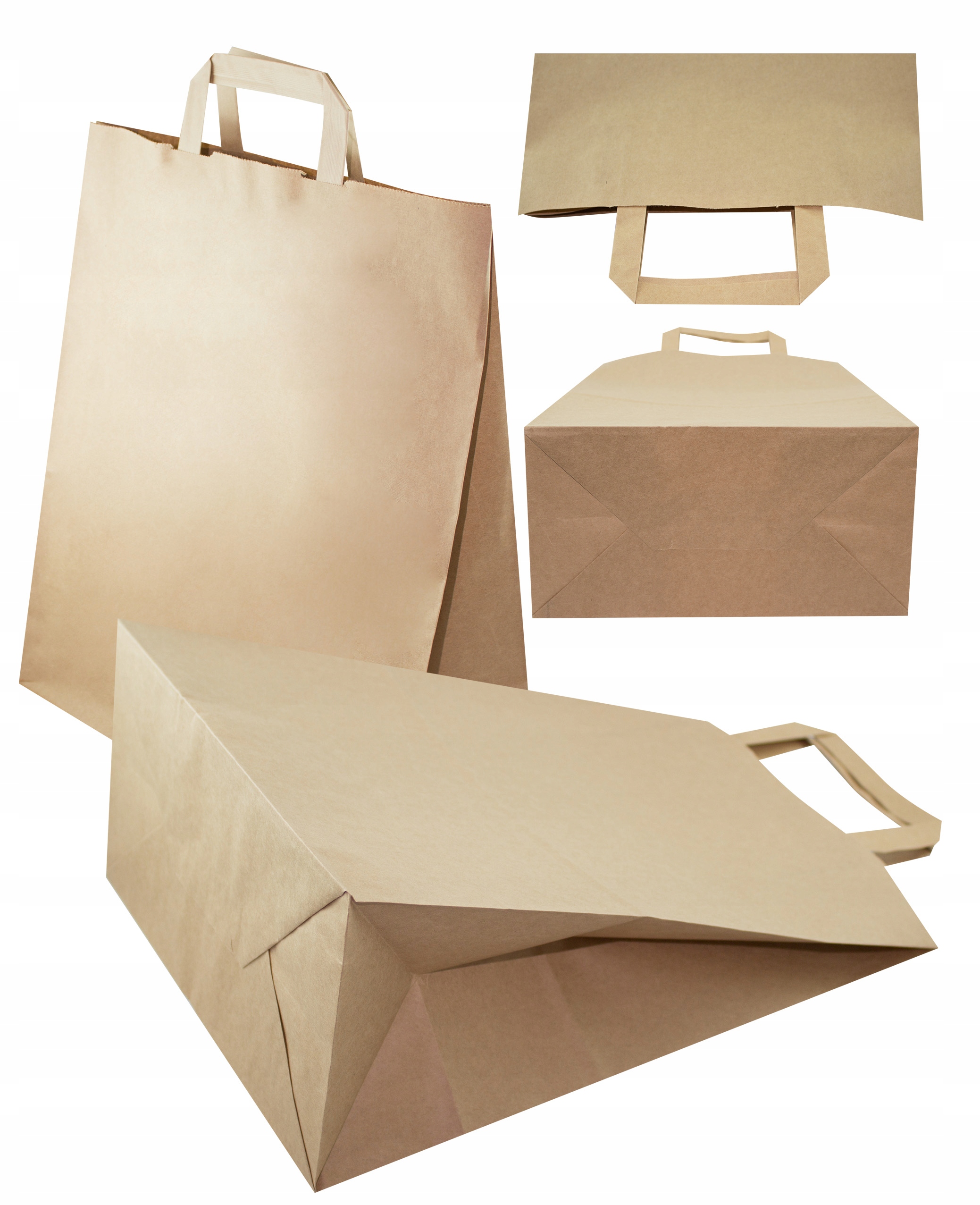 Бумажные пакеты с плоскими ручками доступны на других наших аукционах Allegro в двух стандартных цветах: белом и коричневом. Коричневый - 70 г/м2, белый - 80 г/м2.