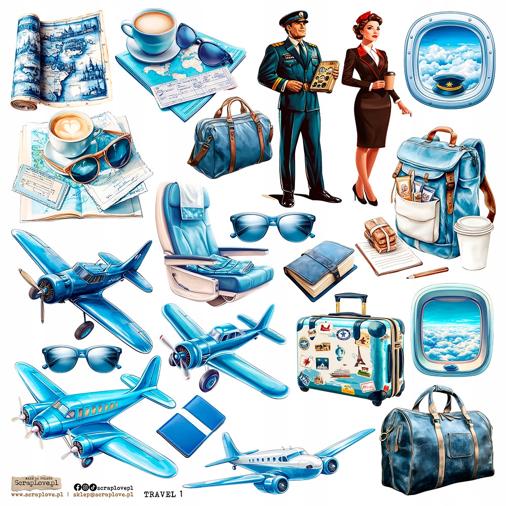 ПАПЕРОВІ НАКЛЕЙКИ 24х24 ScrapLove - Travel 1 подорожі літак пілот