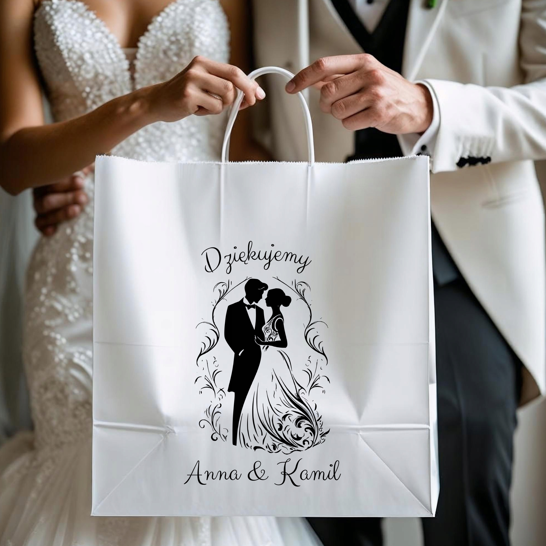 Наши элегантные белые бумажные пакеты с принтом - идеальный выбор для каждого случая! Они будут работать в качестве оригинальной упаковки для свадьбы, причастия, дня рождения или подарков компании. 🎉