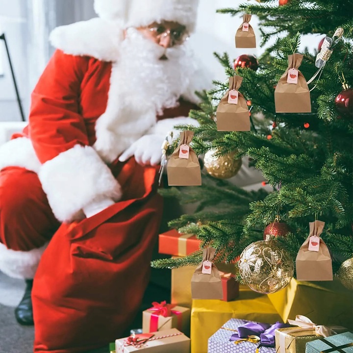 БУМАЖНЫЕ ПАКЕТЫ РОЖДЕСТВЕНСКИЕ СУМКИ ДЛЯ АДВЕНТ-КАЛЕНДАРЯ ДЛЯ ПОДАРКОВ, 24 шт.