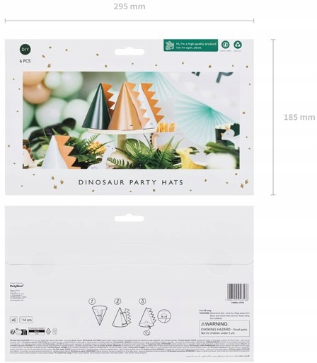 ✔️ Шапки из бумаги "Динозавры", зеленый, коричневый, мятный микс, PartyDeco, 6 шт