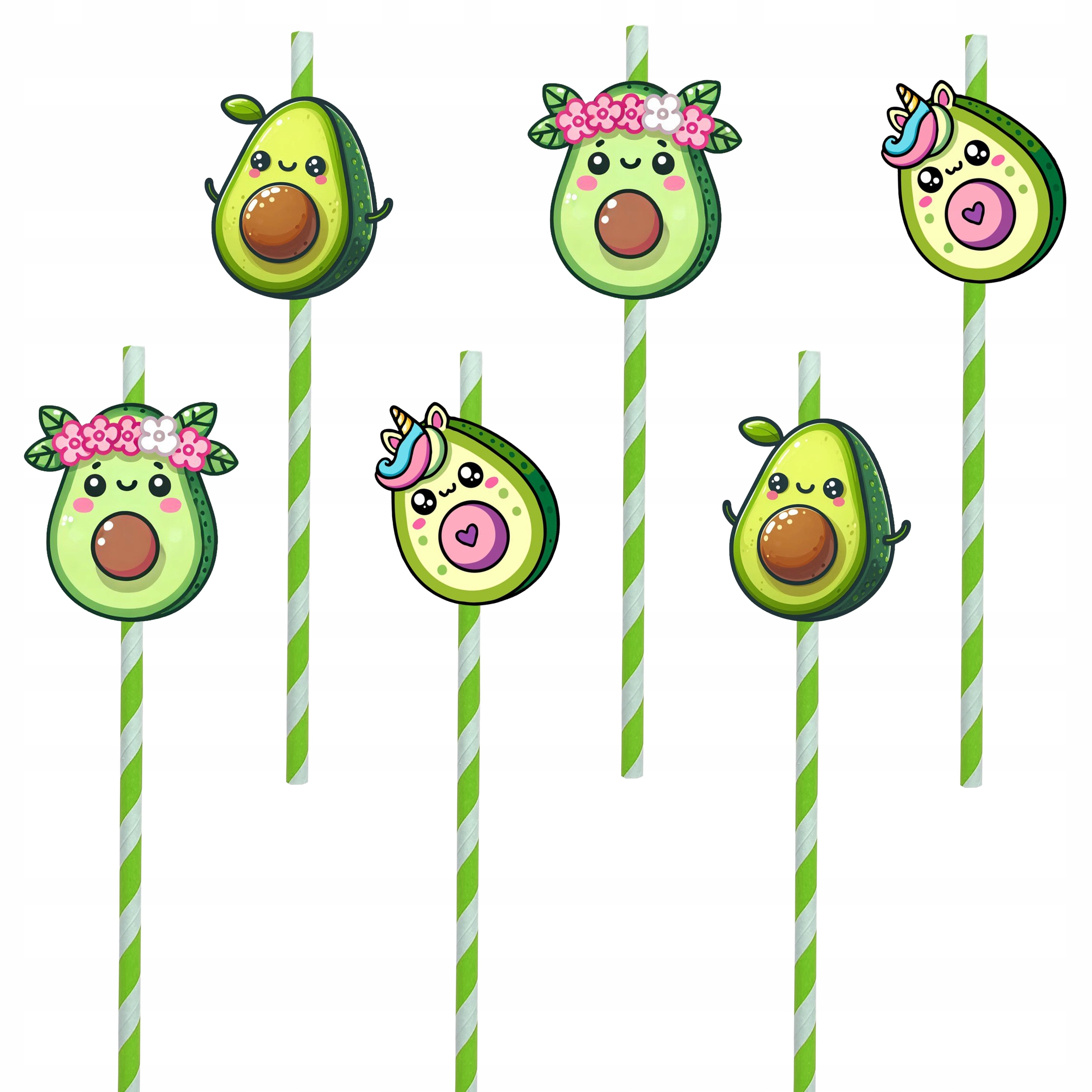 БУМАЖНЫЕ СОЛОМОЧКИ АВОКАДО НА ДЕНЬ РОЖДЕНИЯ 12 шт.