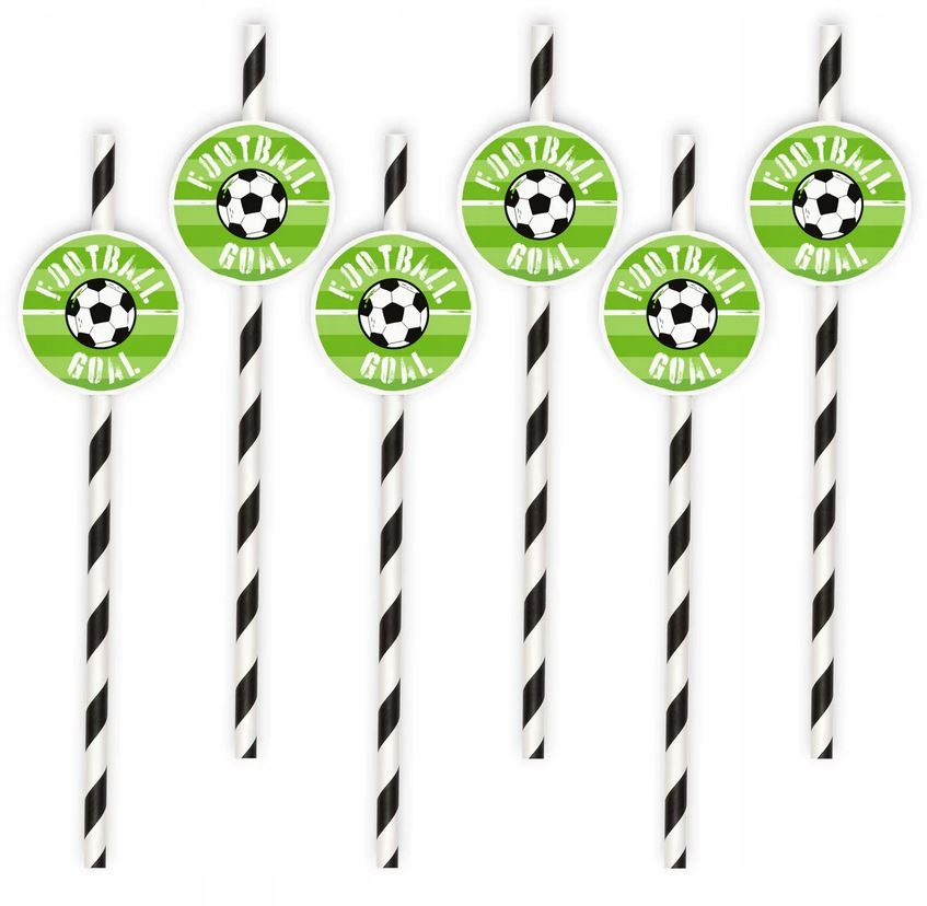 Бумажные трубочки цвета черно-белых линий, украшенные изображением мяча и поля. Аксессуар для вечеринки по случаю дня рождения, который сделает распитие холодных напитков, подаваемых на вечеринке для детей, более привлекательным.