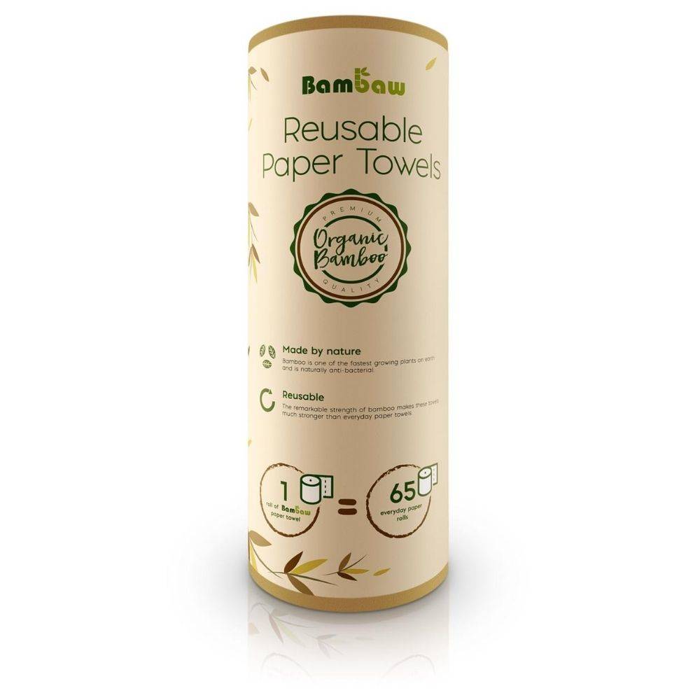 Бамбуковые бумажные полотенца многоразового использования Bambaw Этот бамбуковый рулон гораздо лучше впитывает влагу, чем одноразовые кухонные рулоны, и облегчает очистку.