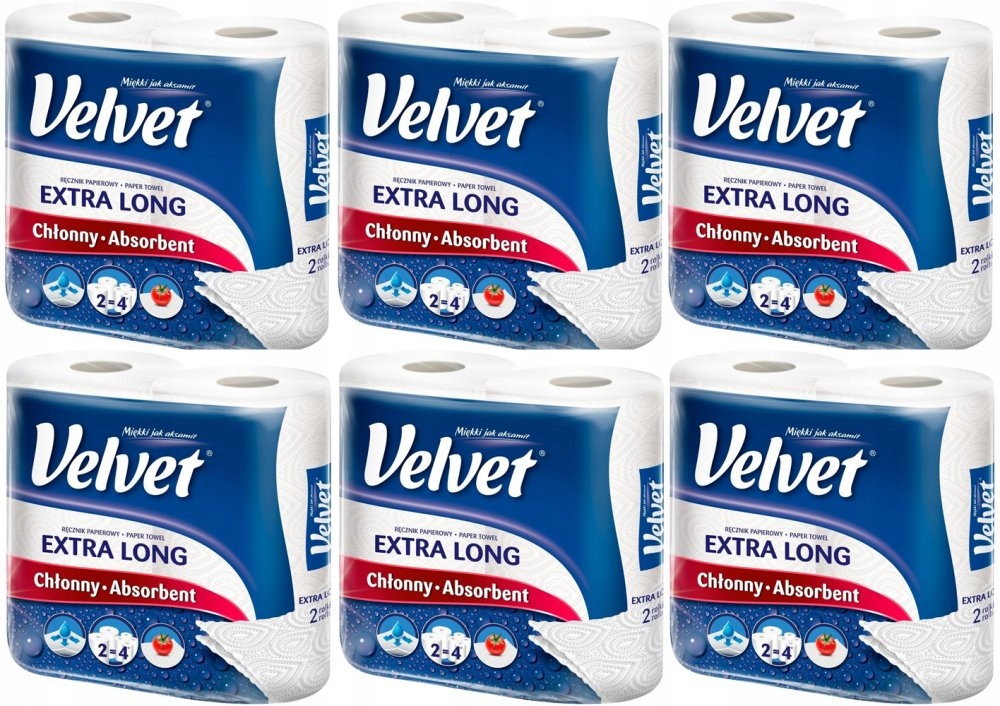 Бархатное бумажное полотенце Extra Long, 12 рулонов