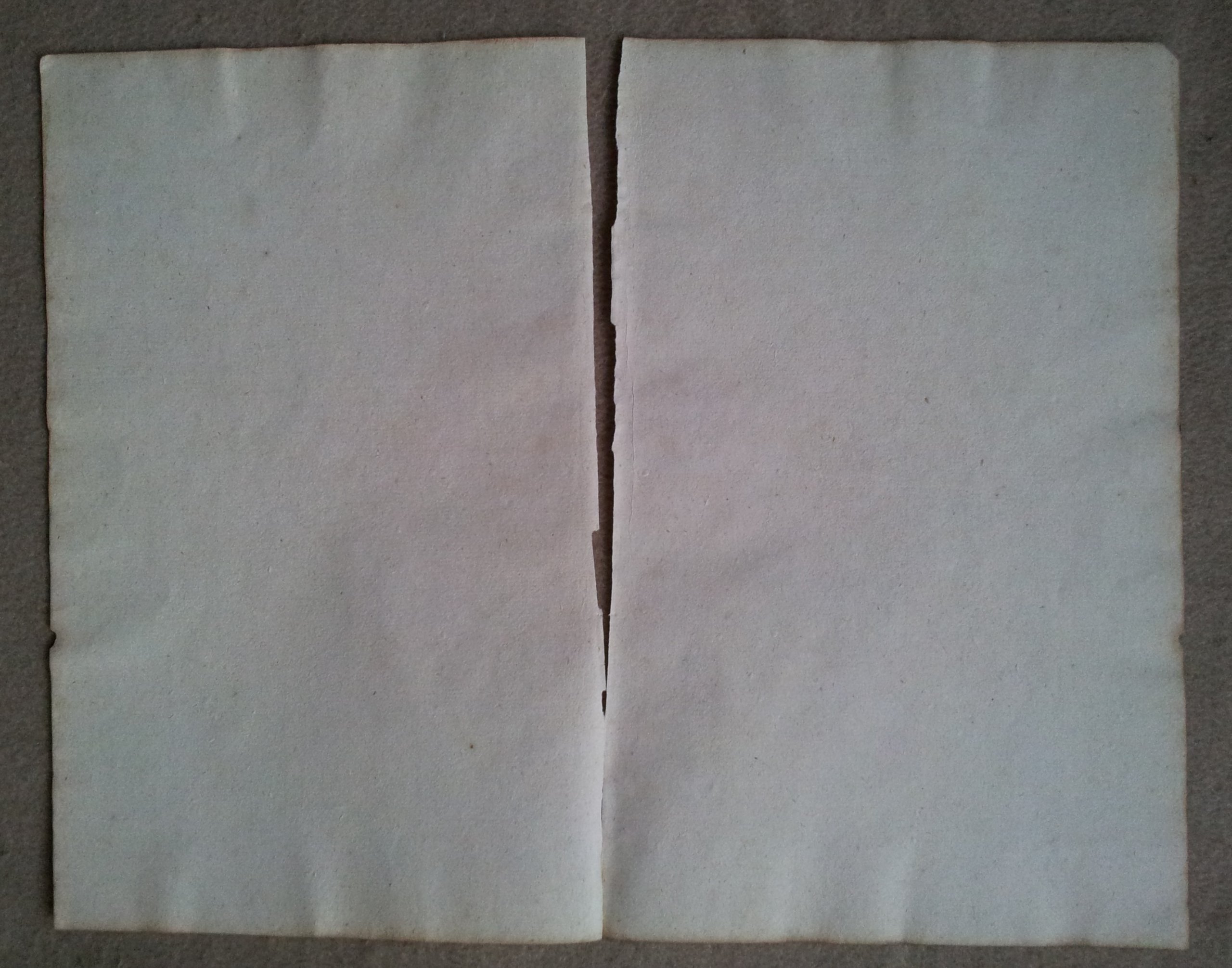 Лист бумаги ручной работы XVIII века (1 большая карточка, к сожалению, разделенная посередине - соединена лишь на небольшом фрагменте).