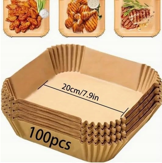 Набор из 100 листов пергаментной бумаги, идеально подходит для фритюрницы и духовки. Обеспечивает легкую очистку и равномерную выпечку.