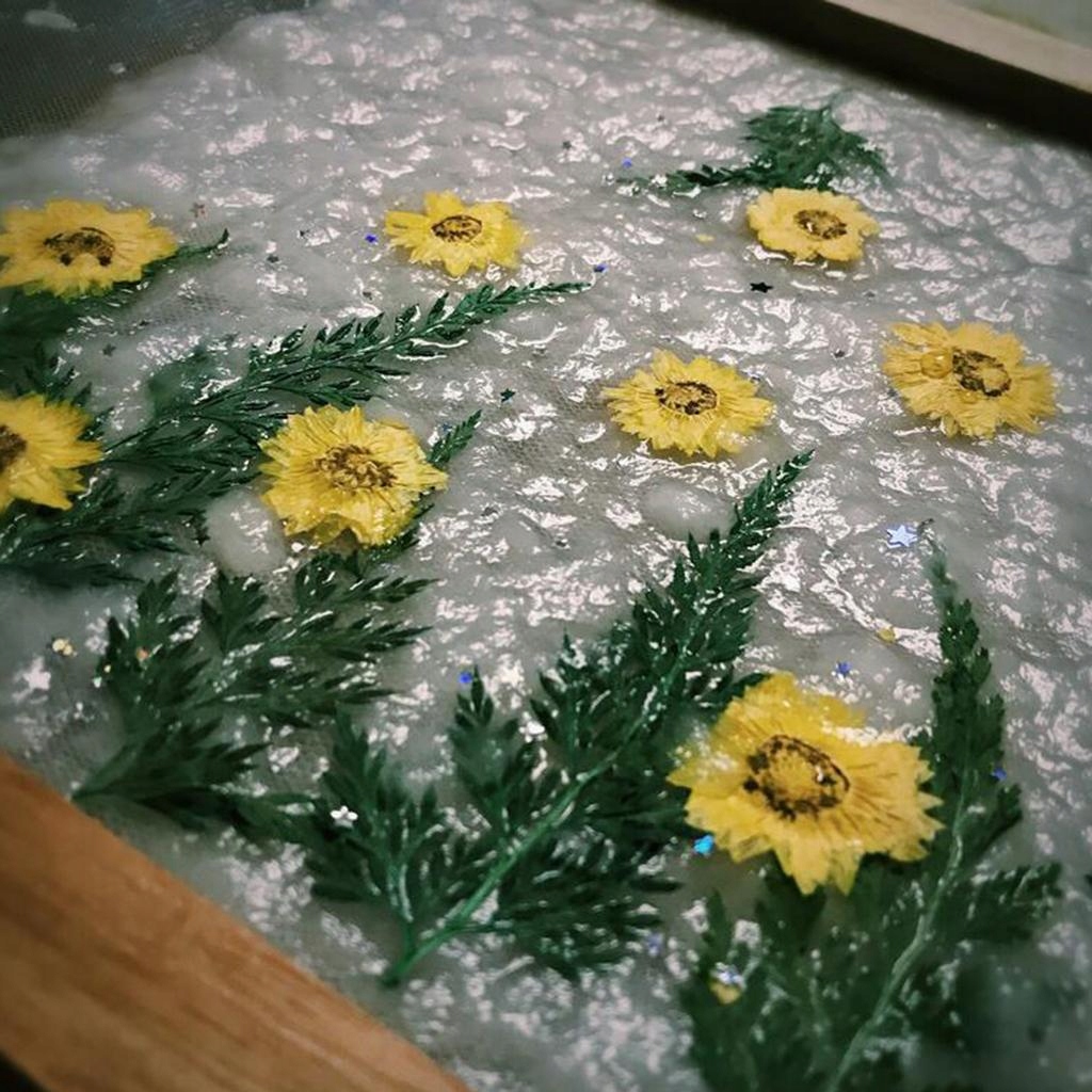 Изготовьте бумагу, переработав бумагу из засушенных цветов.