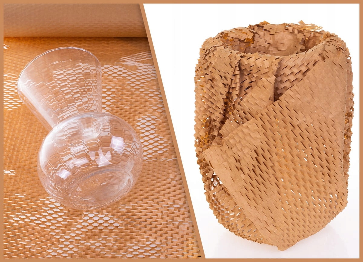 После растяжения создается 3D бумажная сетка с сотовой структурой, используемая для закрепления продукции, обеспечивающая ее защиту при транспортировке. Соседние слои объединяются, создавая эффект, похожий на стрейч-пленку. Благодаря беспыльной и беспыльной бумажной сетке можно легко обматывать, блокировать, застывать, набивать и переплетать. Это элегантная и экологическая защита для перевозки ваших товаров, особенно рекомендуемая людям и компаниям, которые заботятся об окружающей среде.