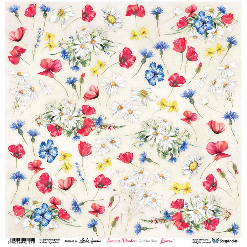 Бумага с элементами 30х30 ScrapAndMe Summer Meadow