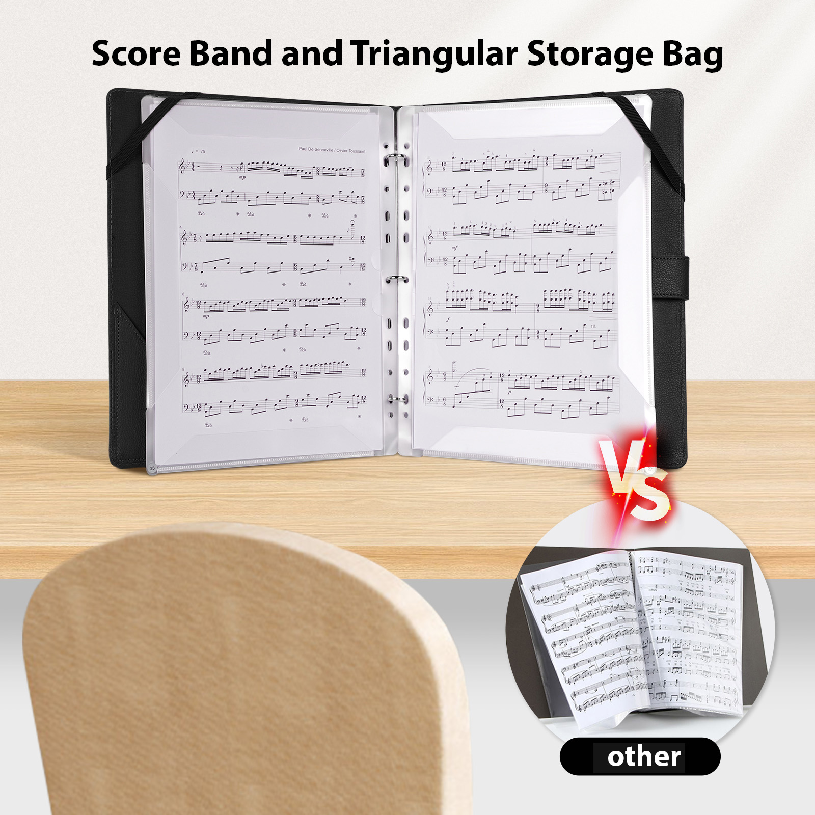 4. 【Сумка для музыкальных нот и треугольная сумка для хранения】: внутренняя крышка портфеля оснащена эластичной лентой для нот, поэтому вы можете использовать ее на столе без подставки для нот. На задней крышке имеется треугольный мешочек для хранения документов формата А4 и меньше, например, закладок, визиток и карт памяти.