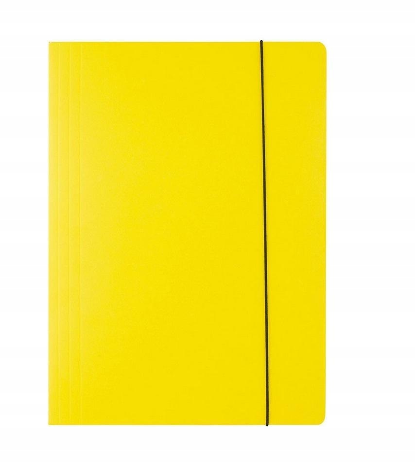 - желтый - формат А4 - изготовлен из прочного картона плотностью 300 г - застегивается на резинку - три внутренних крыла предотвращают выпадение документов меньшего размера