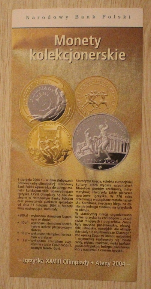 ПАПКА NBP 2 PLN, 2 x 10 и 200 PLN 2004 АФИНЫ - ПОЛЬСКИЙ ЯЗЫК
