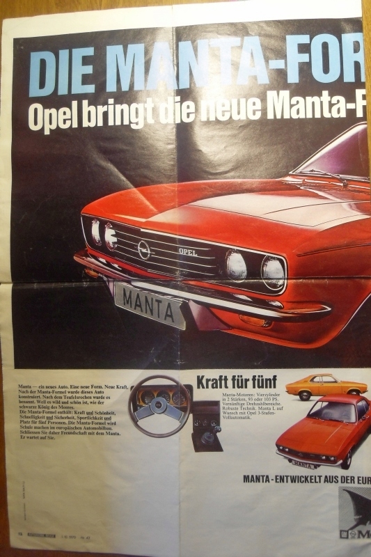 ПАПКА ПОСТЕРІВ OPEL MANTA PROSPECT 1970 CLASSIC