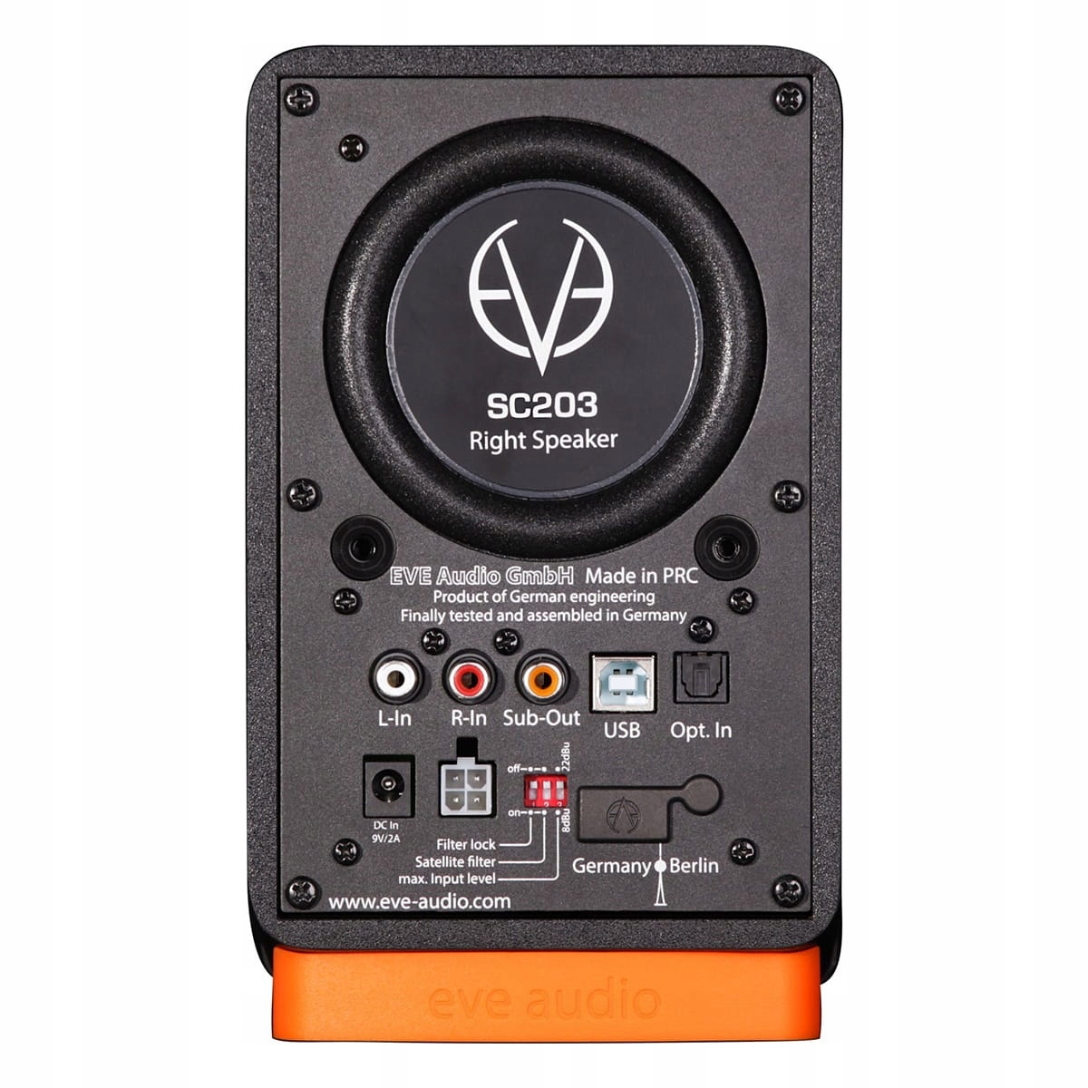 ВЧ-динамик представляет собой знаменитую технологию AMT, специально адаптированную для нужд небольшой модели SC203. Его новый динамик получил название μA.M.T. дает высококачественный звук – чрезвычайно чистый и точный. Мобильная колонка Ева Audio SC203, как и любой студийный монитор Eve Audio, оснащен: DSP-процессор для регулировки баланса и нескольких различных настроек фильтров. DSP-движок поддерживается высококачественным аналого-цифровым преобразователем 192 кГц/24 бита от Cirrus. Логика. Поскольку усилитель ШИМ был подключен непосредственно к DSP, это решение не требует дополнительного преобразования.