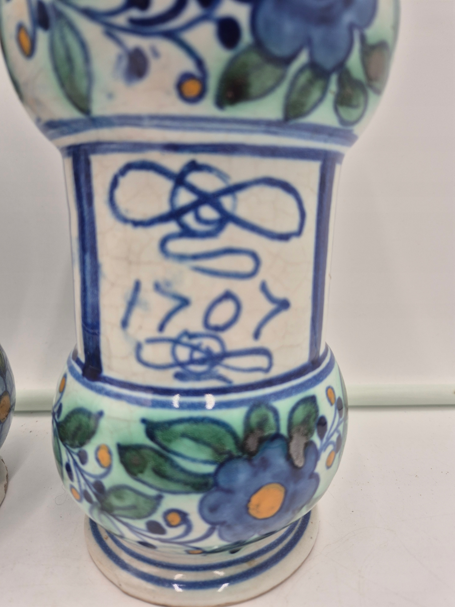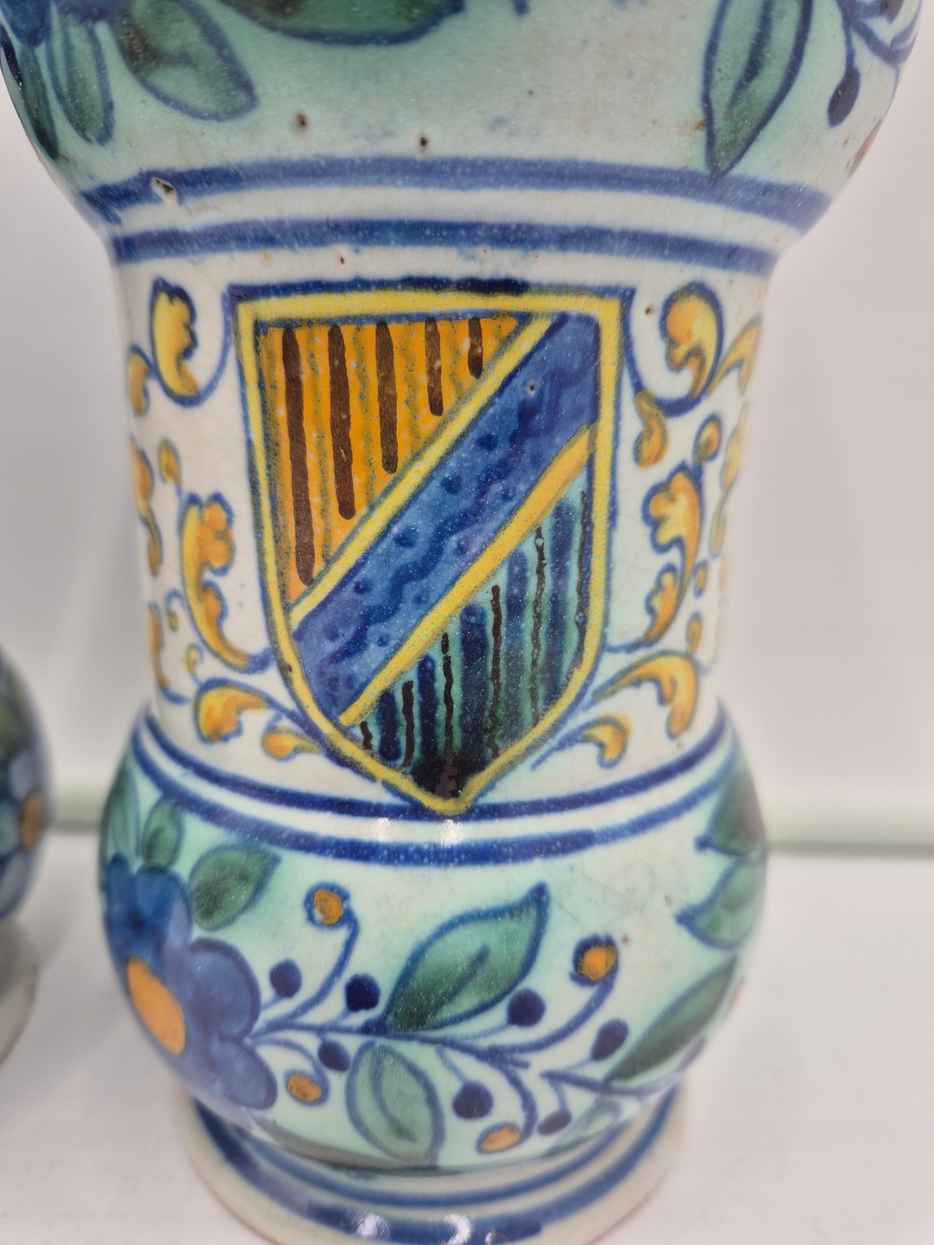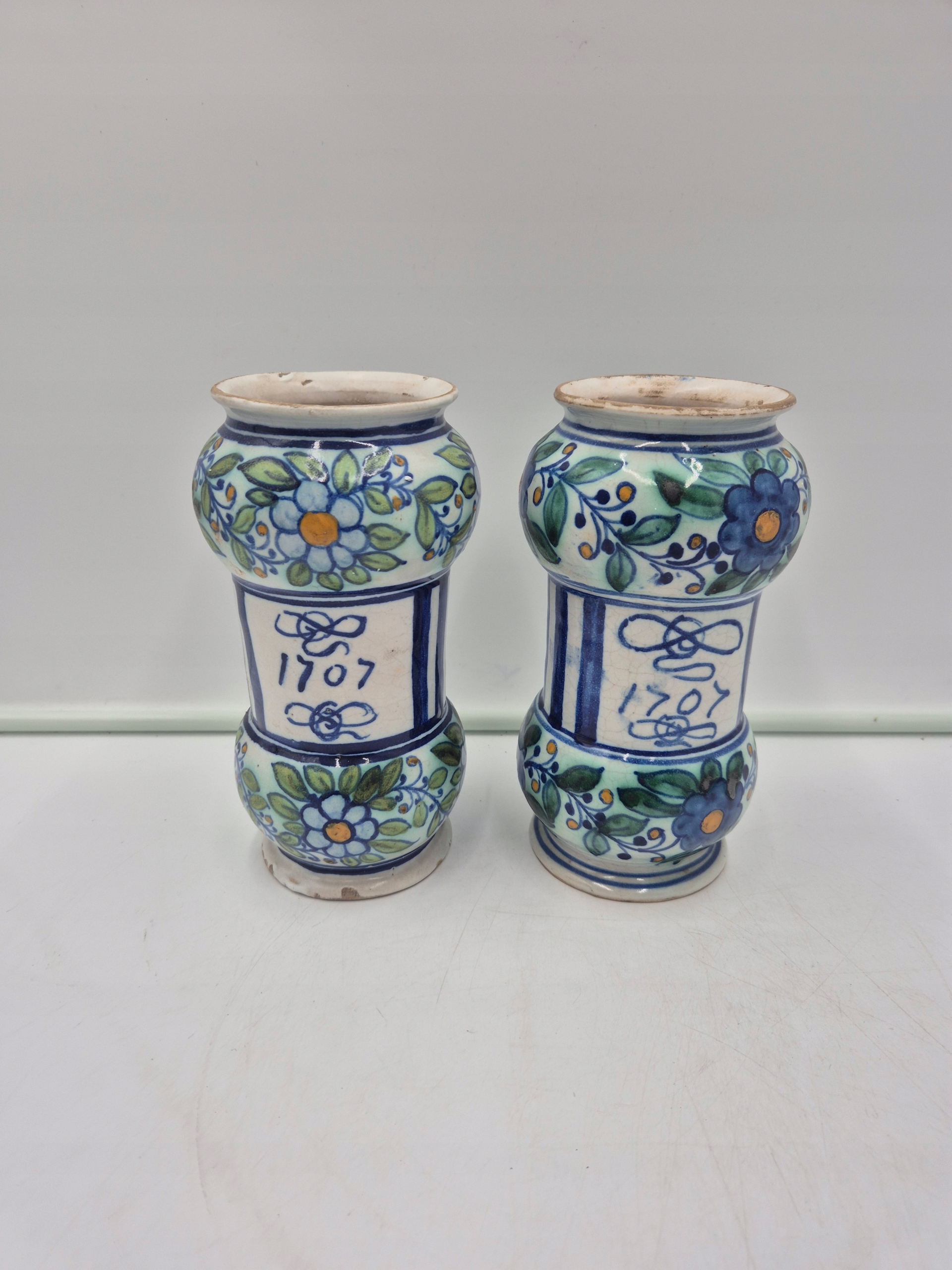 Пара аптечных контейнеров CHARITAS I из майолики, 1707 г., Франция, антиквариат.