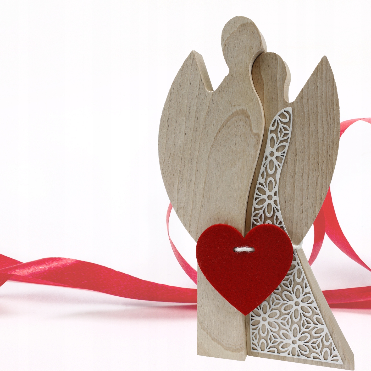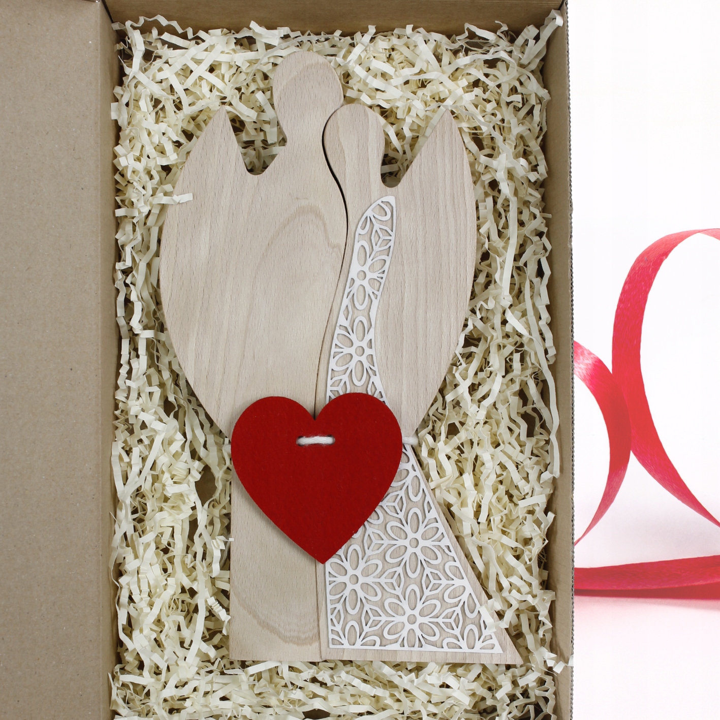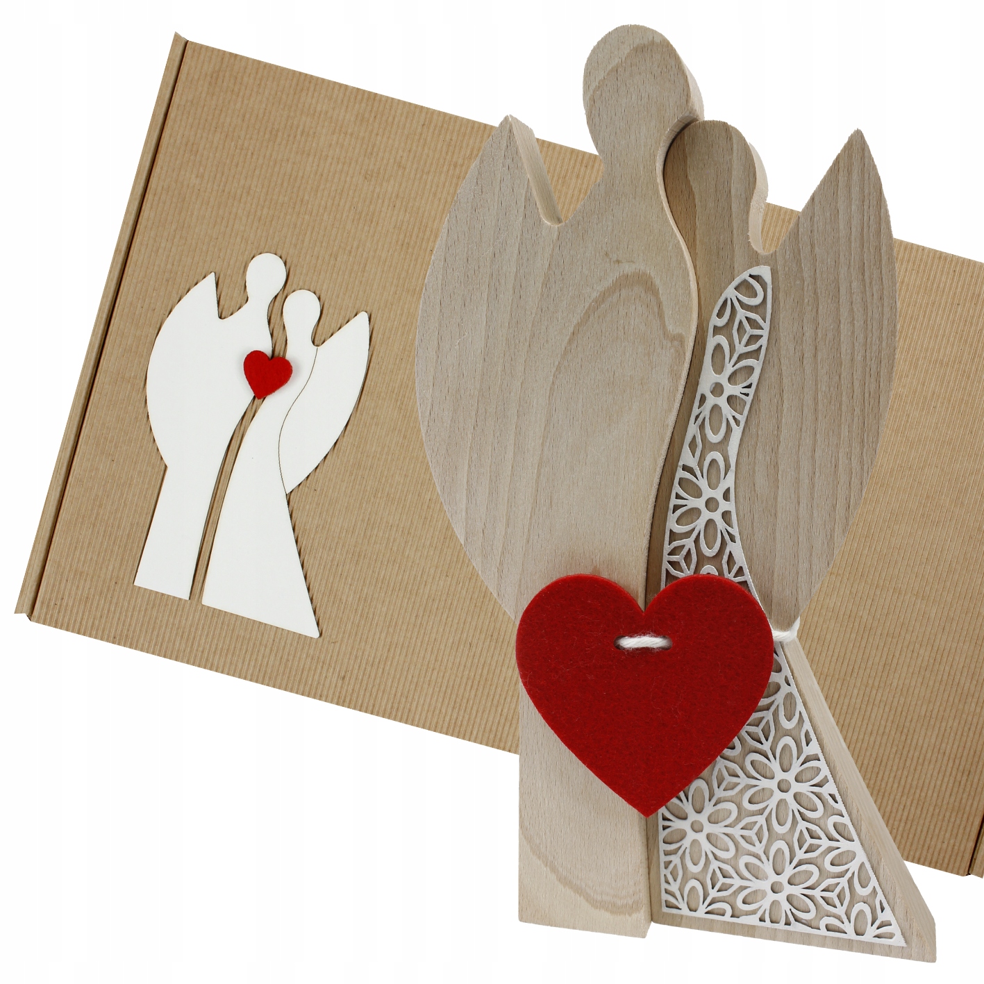 Пара деревянных ангелов Свадебное сердце подарок