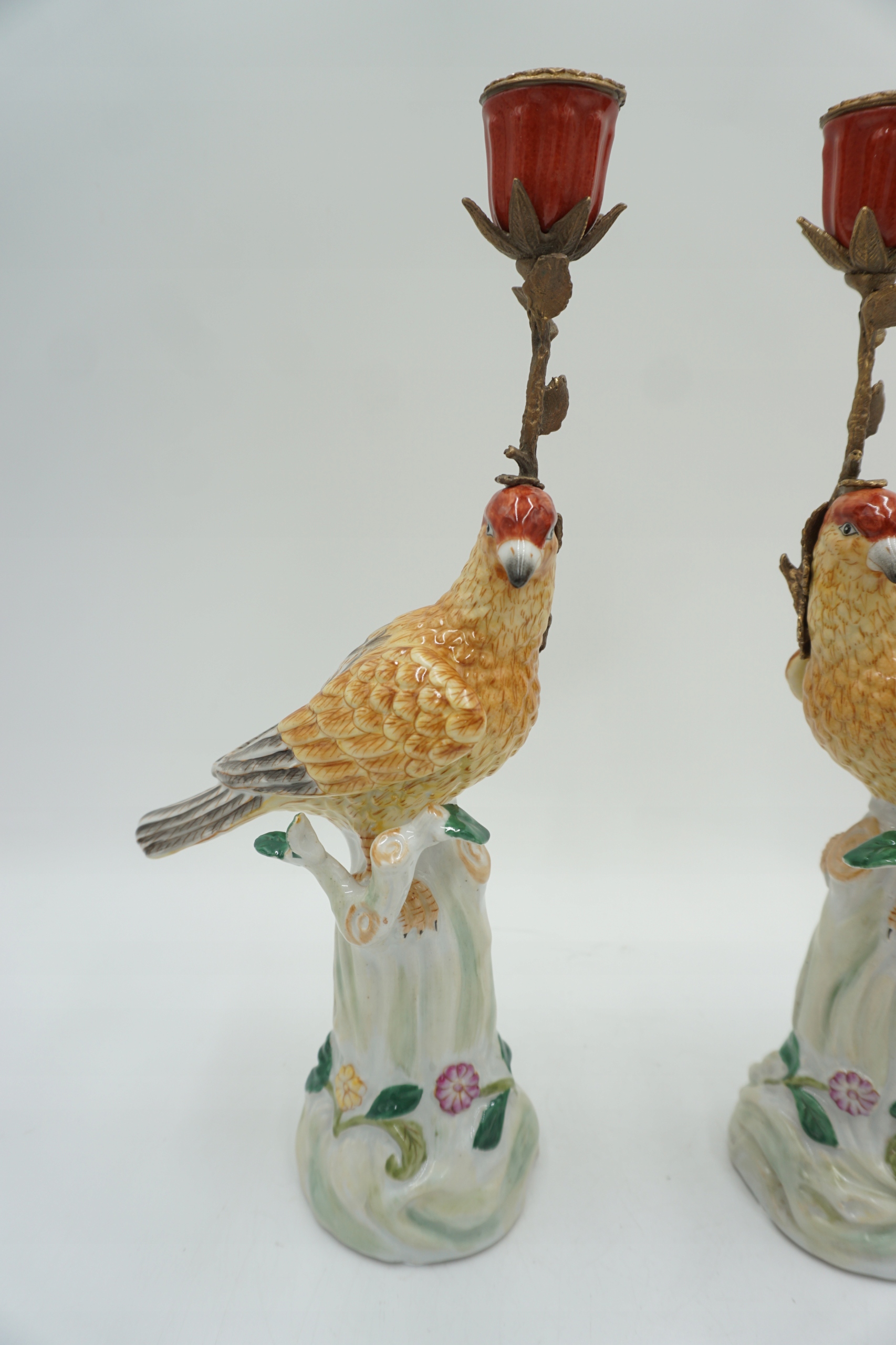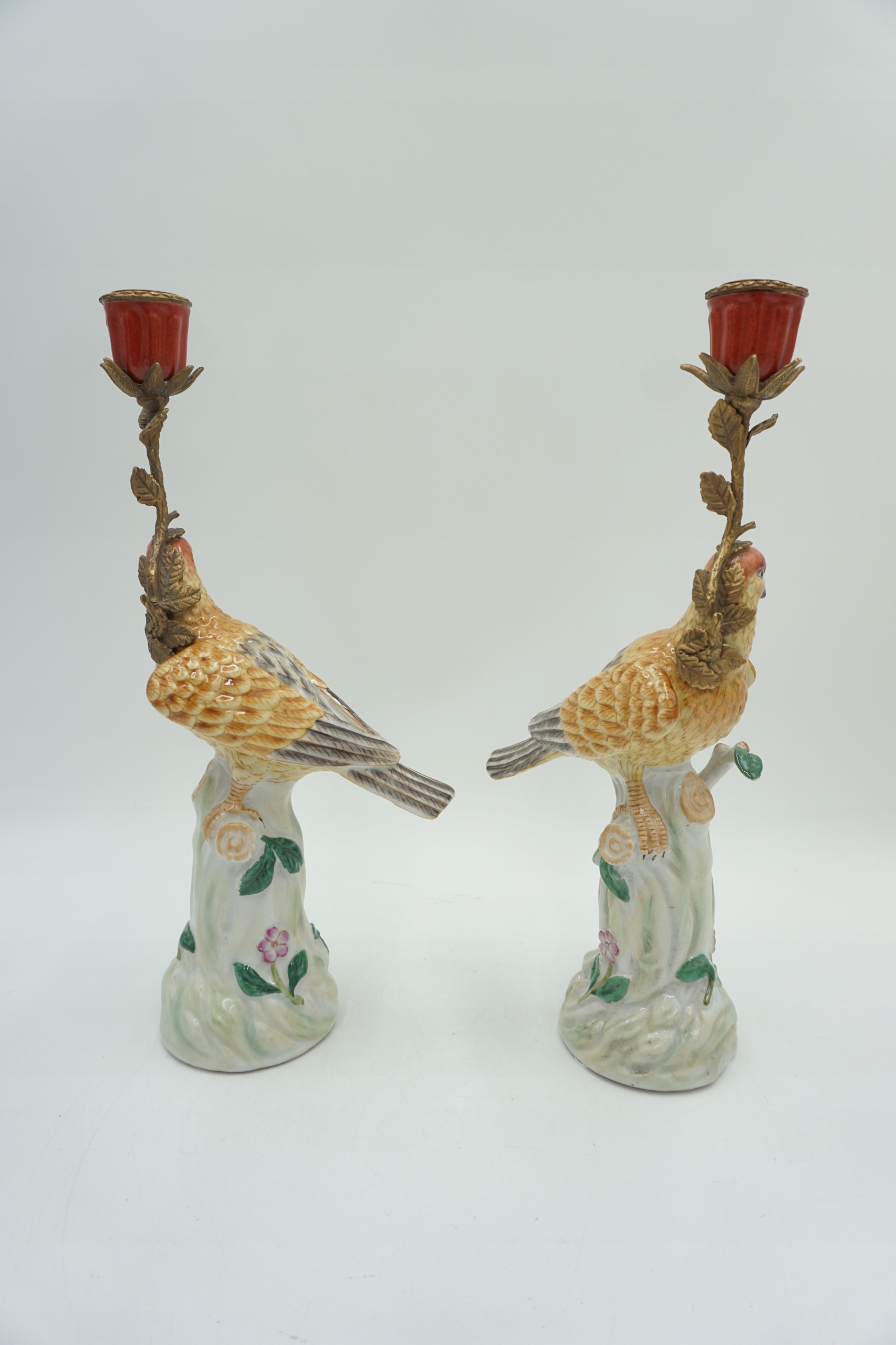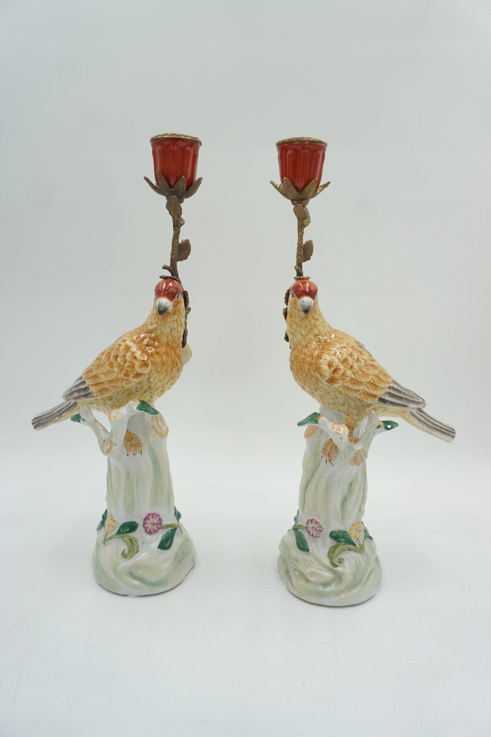 Пара фарфоровых фарфоровых подсвечников с бронзовым чудом.