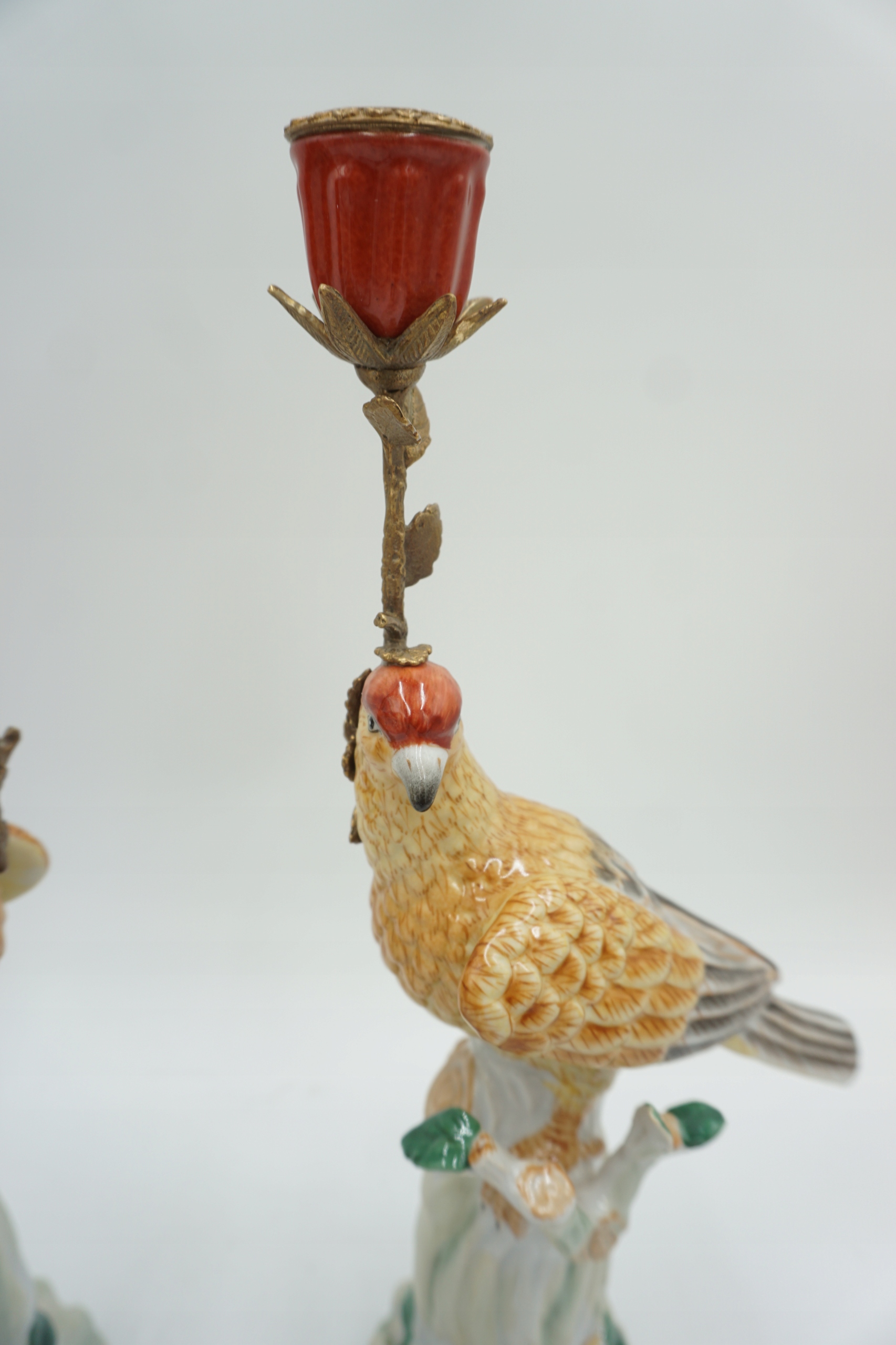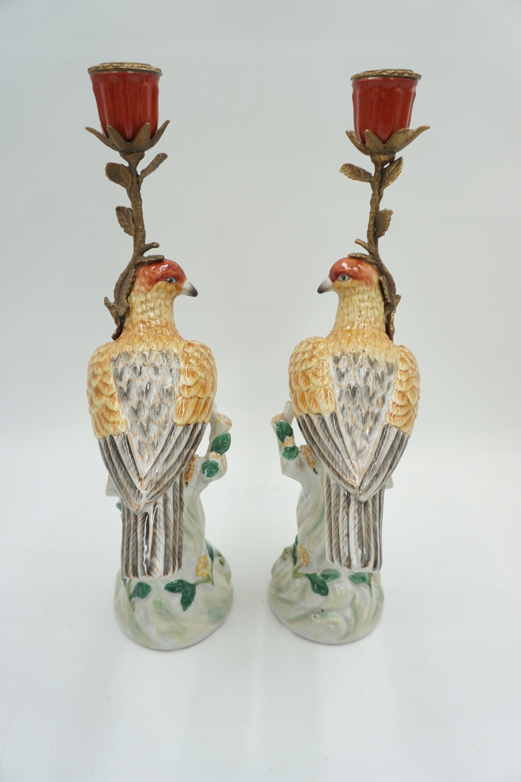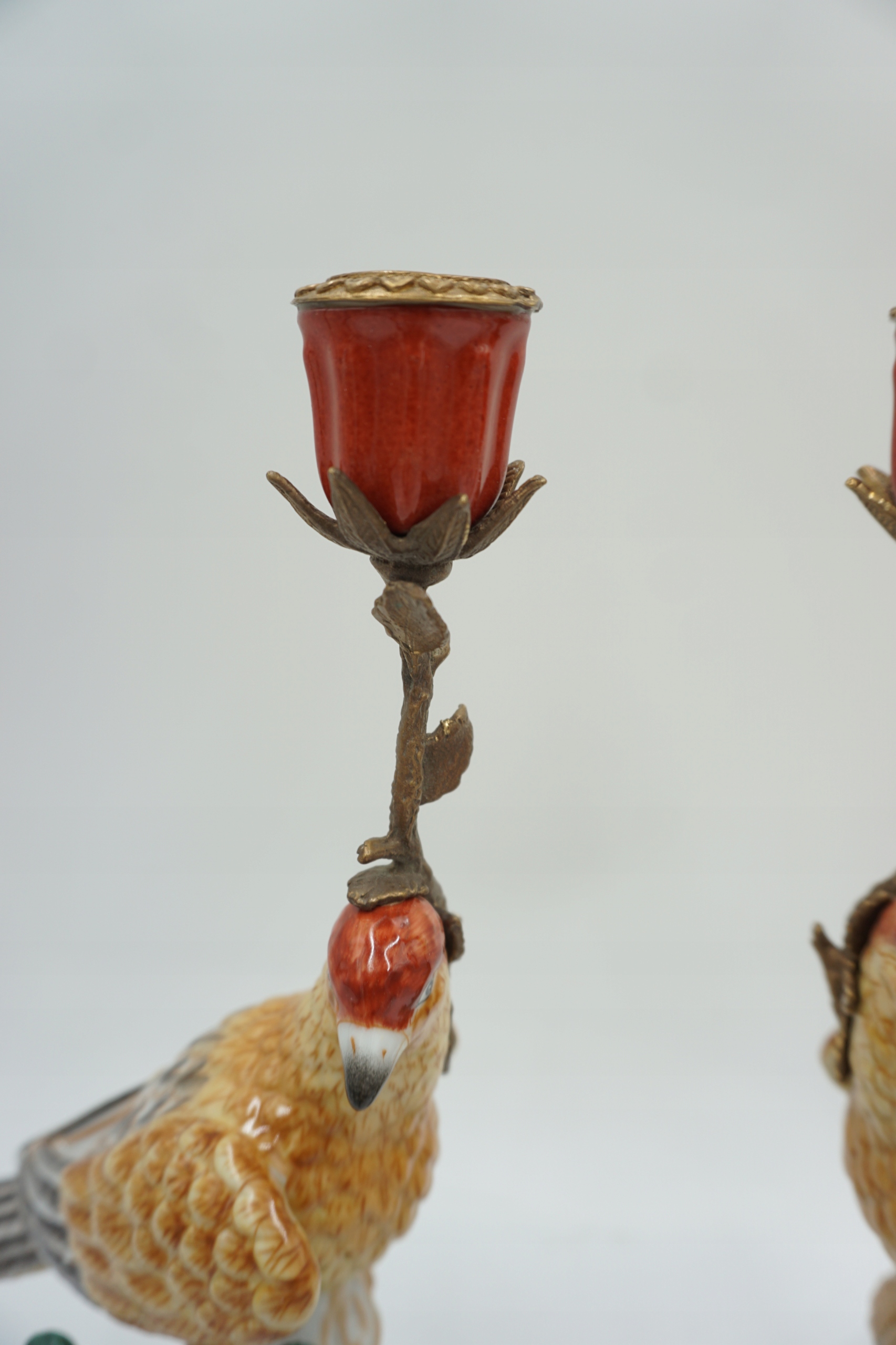 Пара фарфоровых фарфоровых подсвечников с бронзовым чудом.