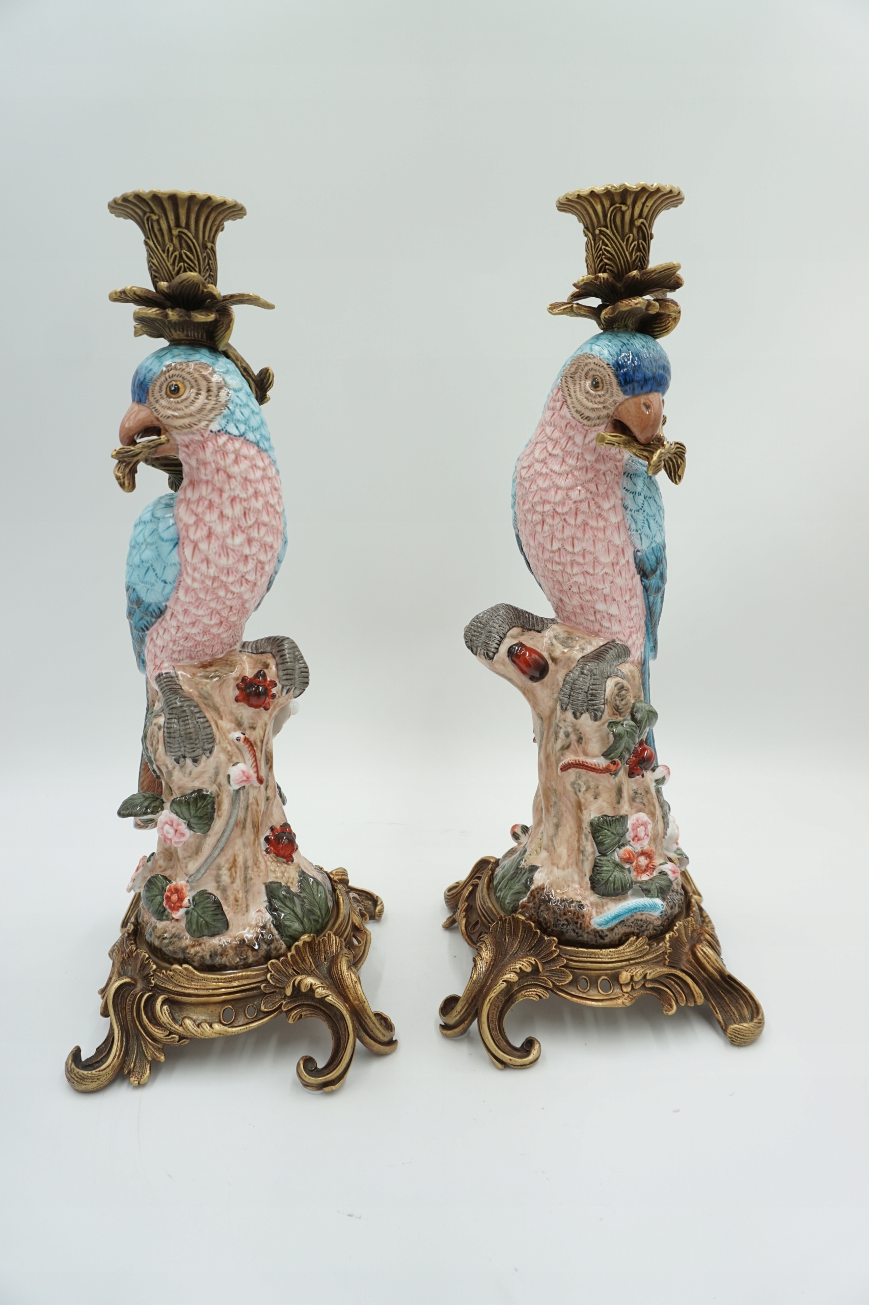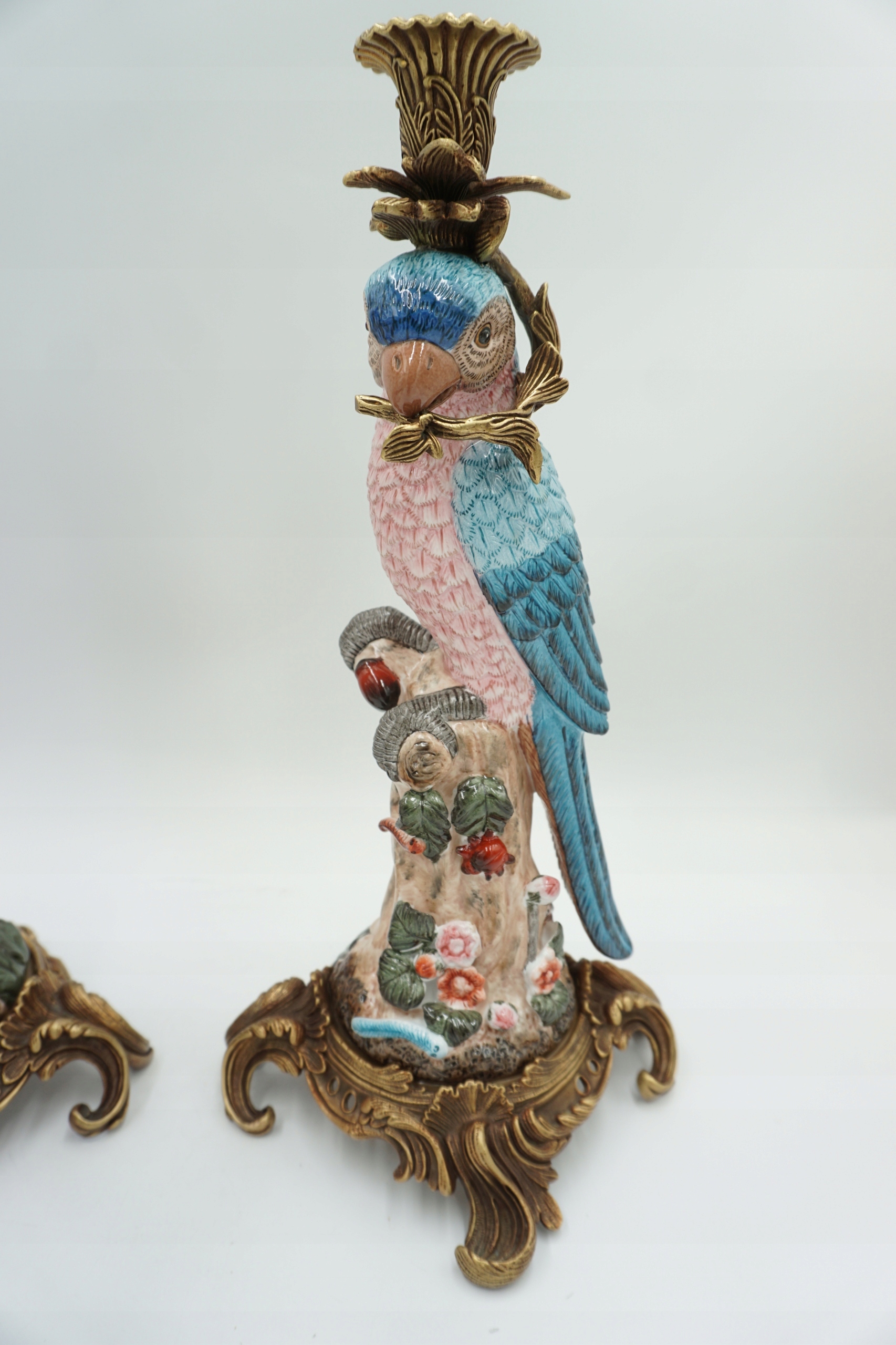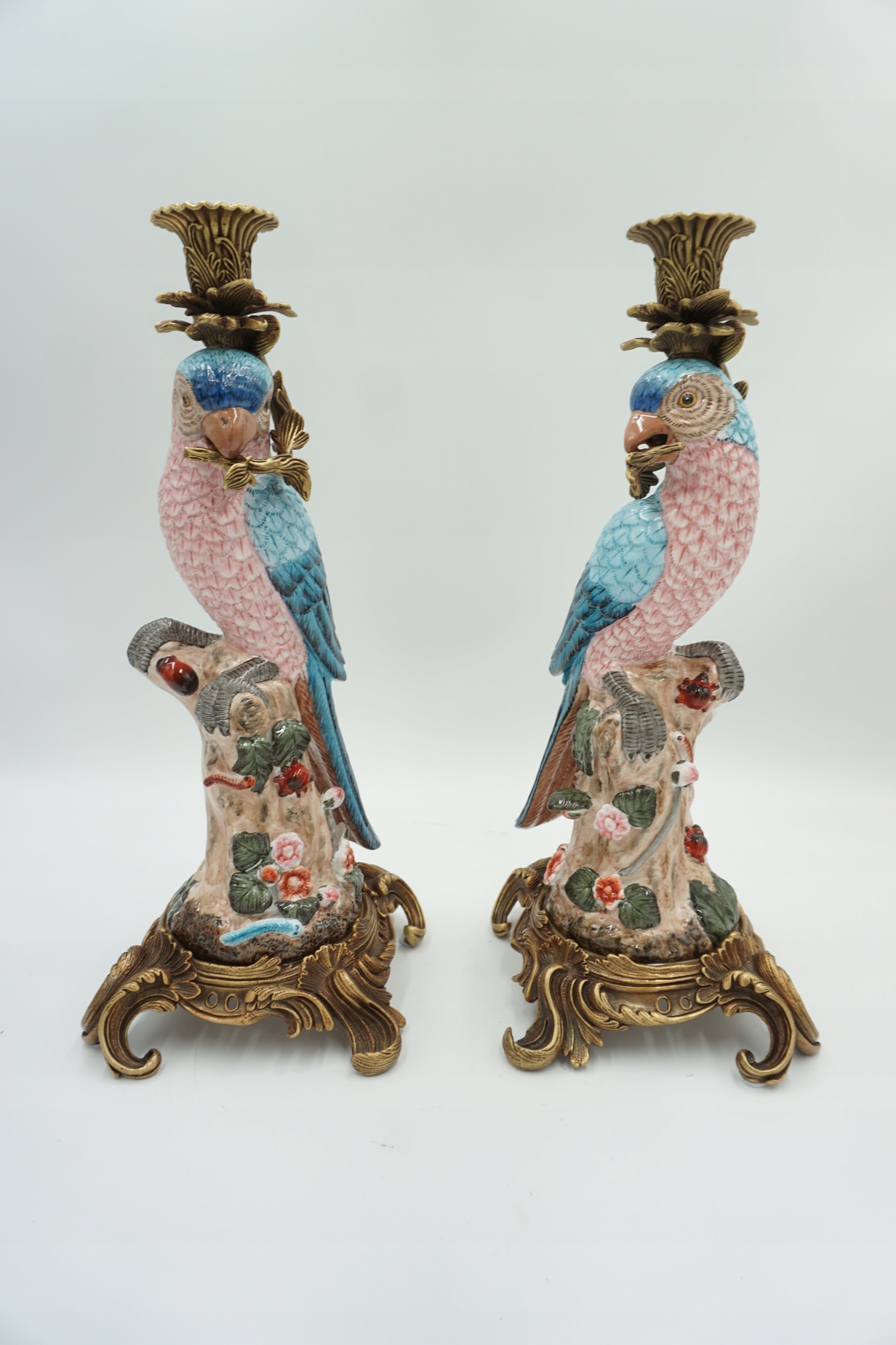 Пара фарфоровых фарфоровых подсвечников с бронзовым чудом.