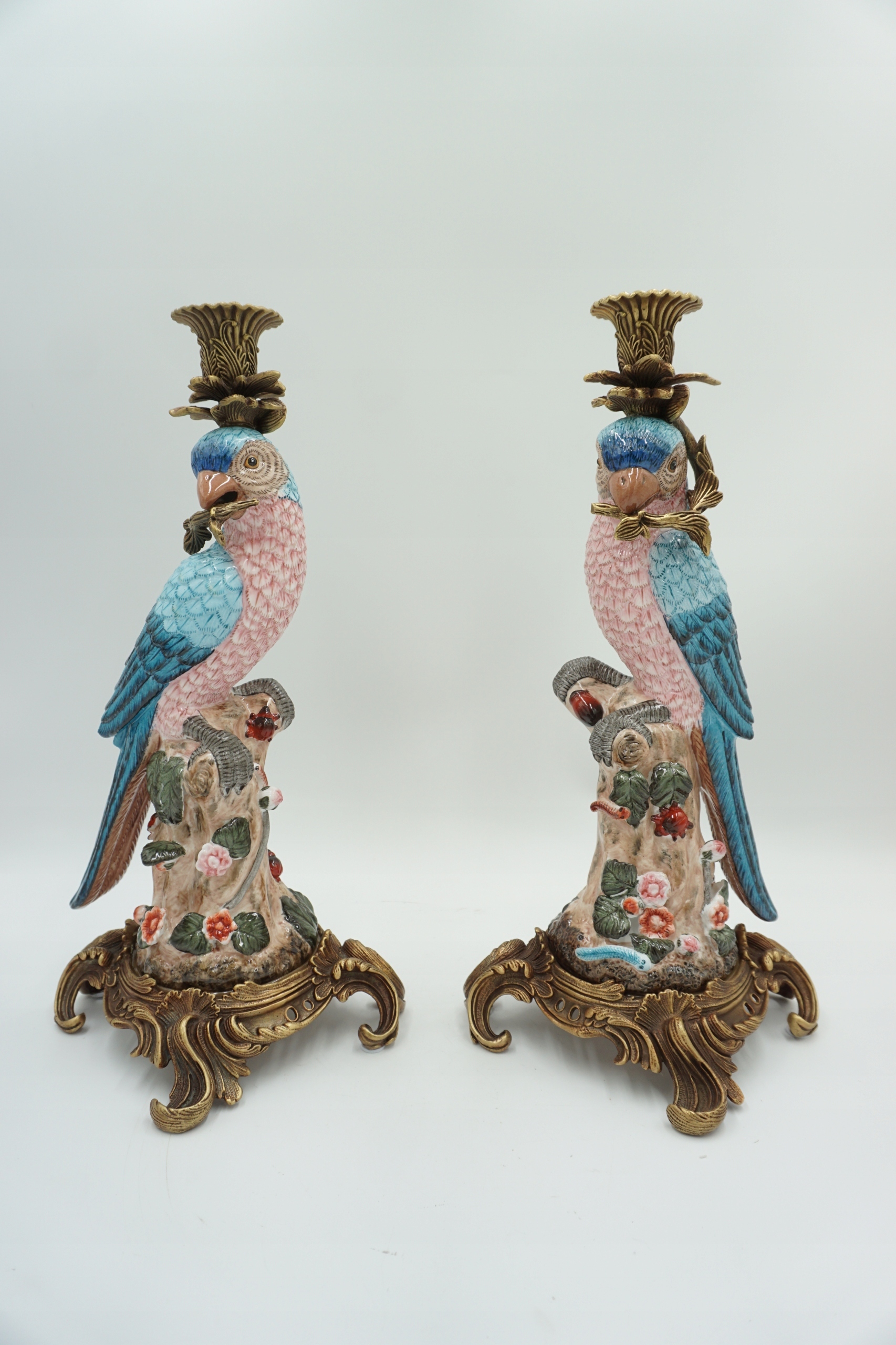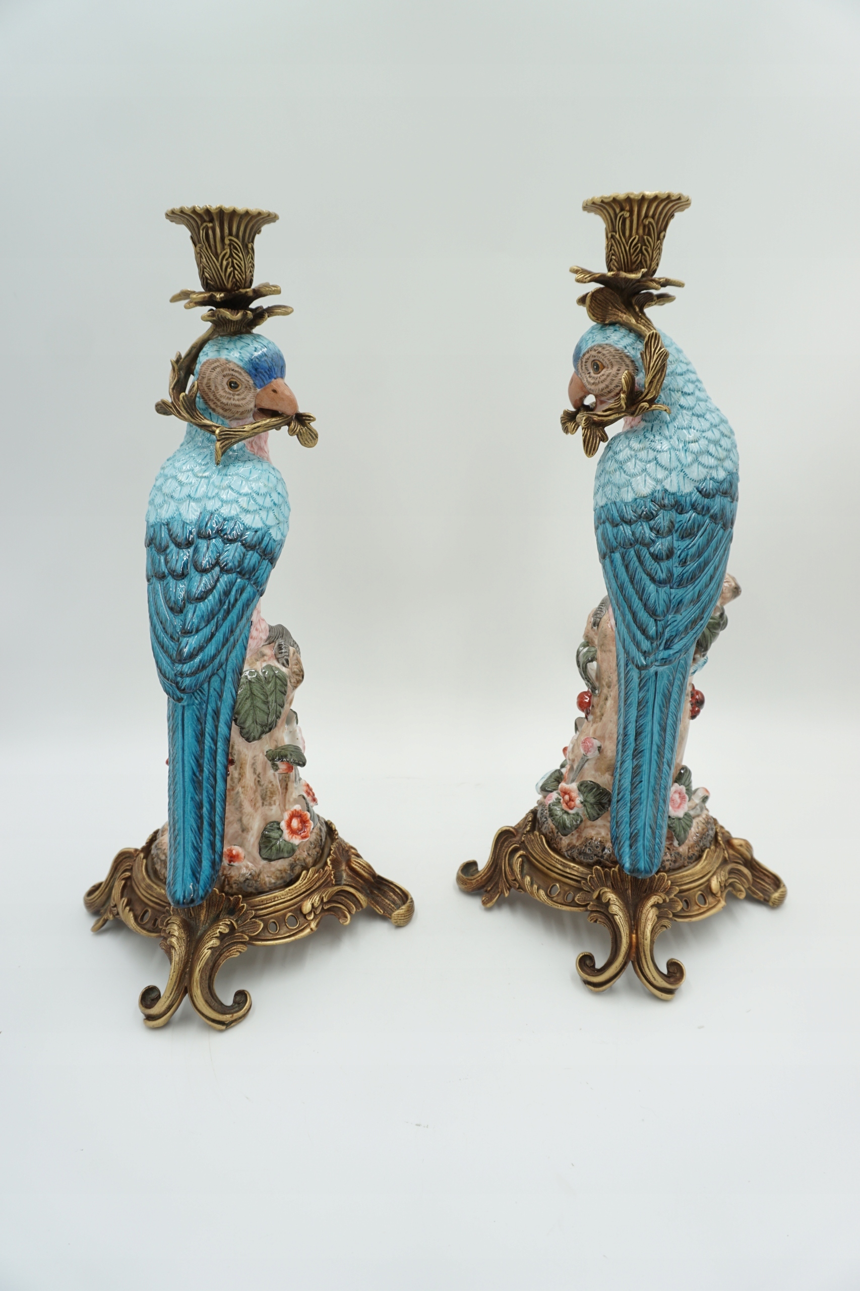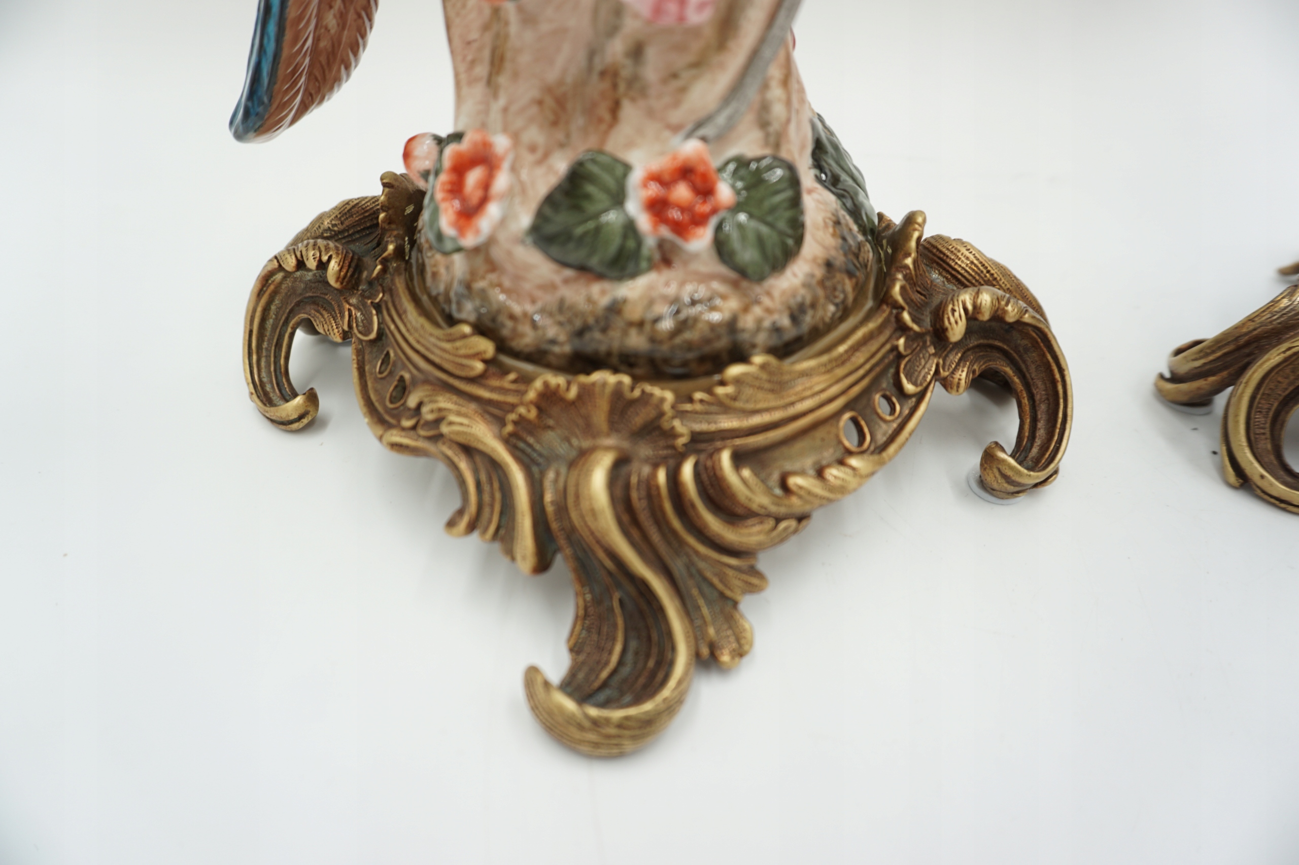 Пара фарфоровых фарфоровых подсвечников с бронзовым чудом.