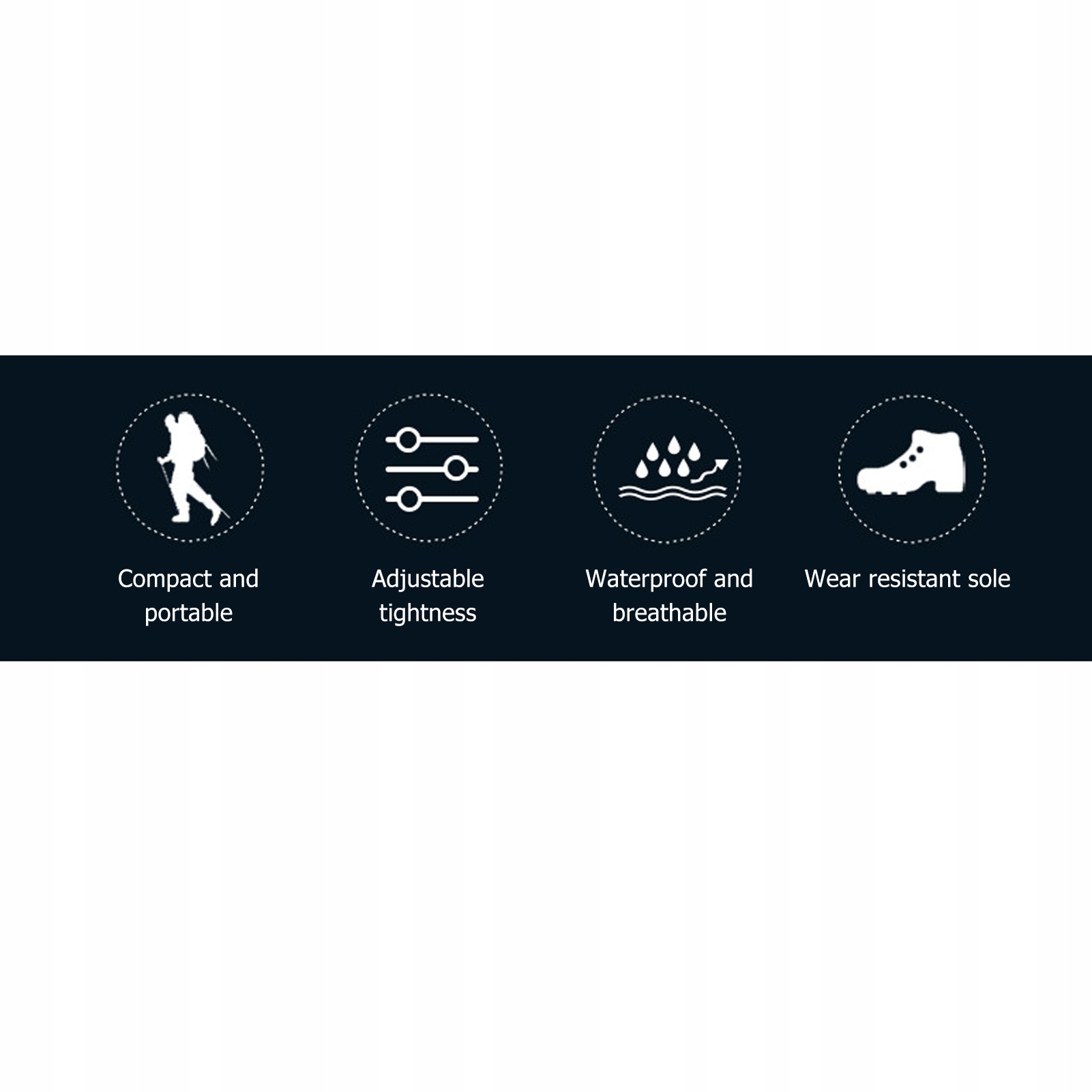 3. С эластичным ремешком: эластичный ремешок имеет укрепляющую и противоскользящую функцию, благодаря чему гетры, закрывающие обувь, лучше прилегают и их нелегко ослабить. Молния обеспечивает стабильное открывание и закрывание, что позволяет легко надевать и снимать.