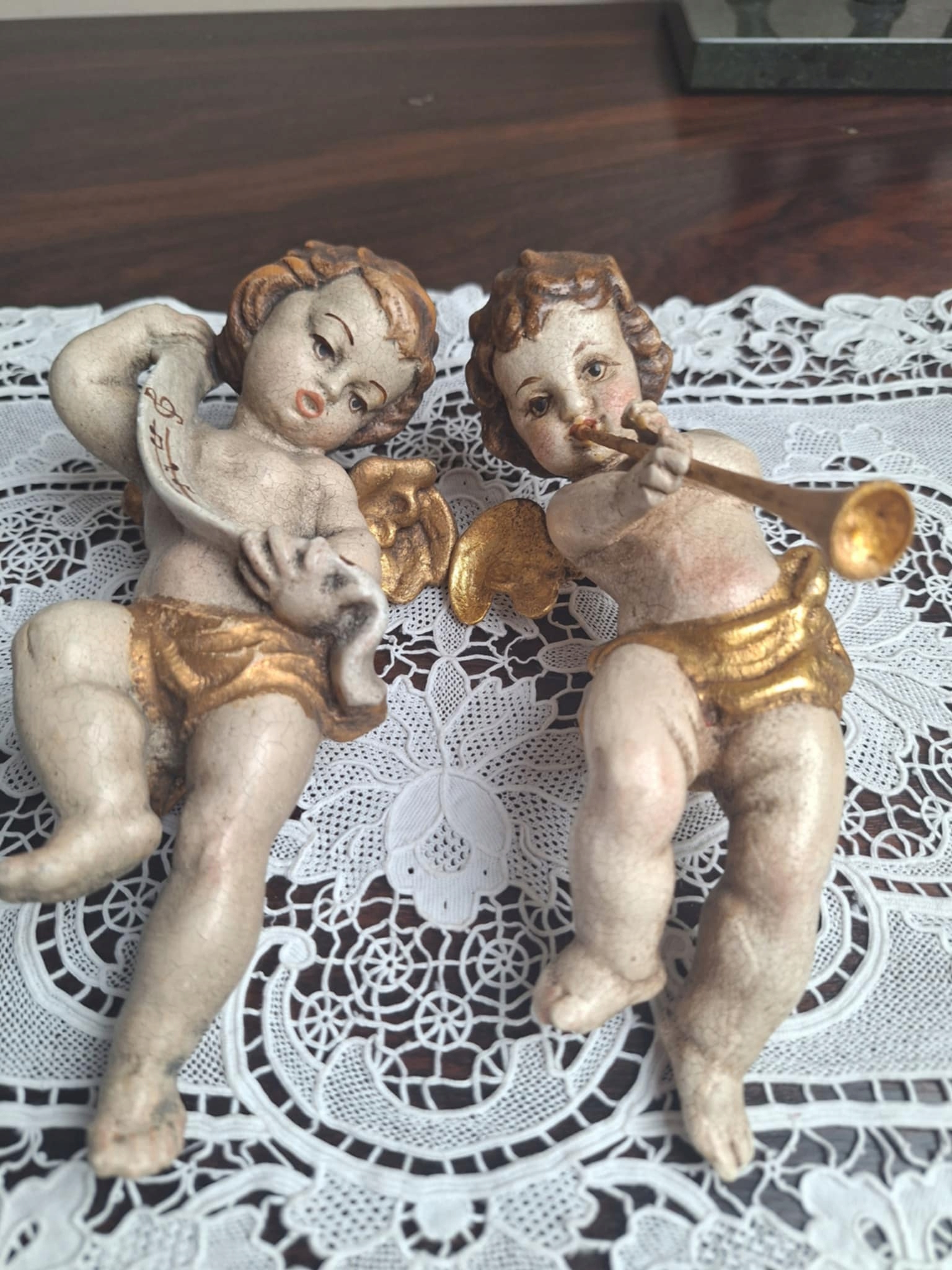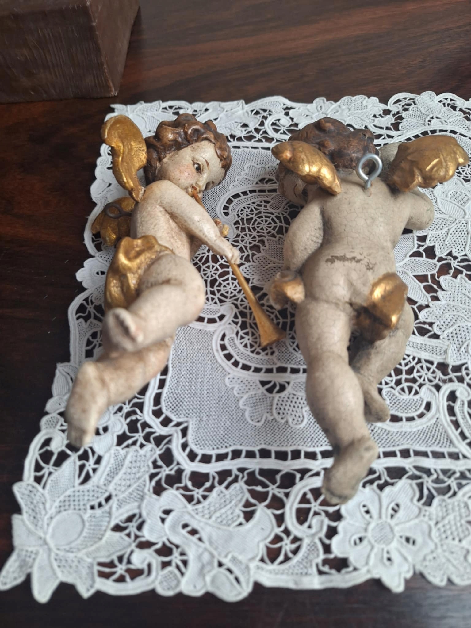 Пара ангелов пут что -то деревянная скульптура в полихроме