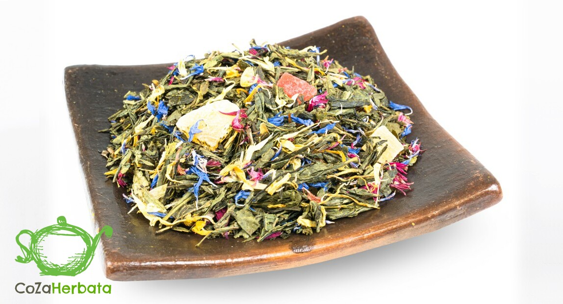 Sencha, ананас, киви, папайя, синий и розовый, календула, аромат