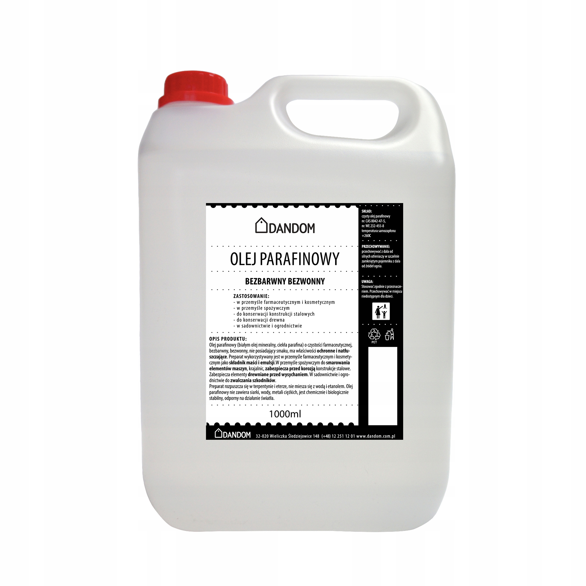 Масло парафиновое (белое минеральное масло, парафин жидкий) фармацевтического качества, бесцветное, без запаха, без вкуса, обладает защитными и смазочными свойствами. Препарат применяют в фармацевтической и косметической промышленности в составе мазей и эмульсий, в пищевой промышленности — для смазывания элементов машин и нарезных станков, защиты стальных конструкций от коррозии. Защищает деревянные элементы от высыхания. В садоводстве и садоводстве для борьбы с вредителями.